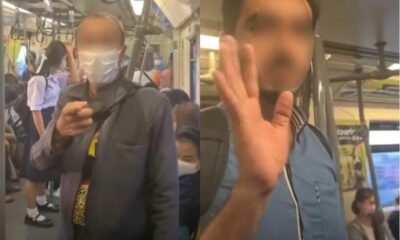 An angry Thai man, claiming to be a police officer, gave a foreign man a mouthful of abuse for not wearing a mask on the BTS...