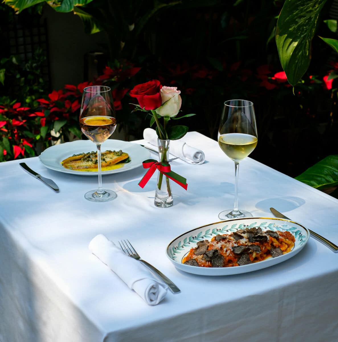 Of course, no Italian affair is complete without the right pour. Bubbly Ferrari Rosé, a sultry Pinot Nero, or a Valentine’s Margarita with tequila, raspberry, and lime, each glass raises a toast to love.
