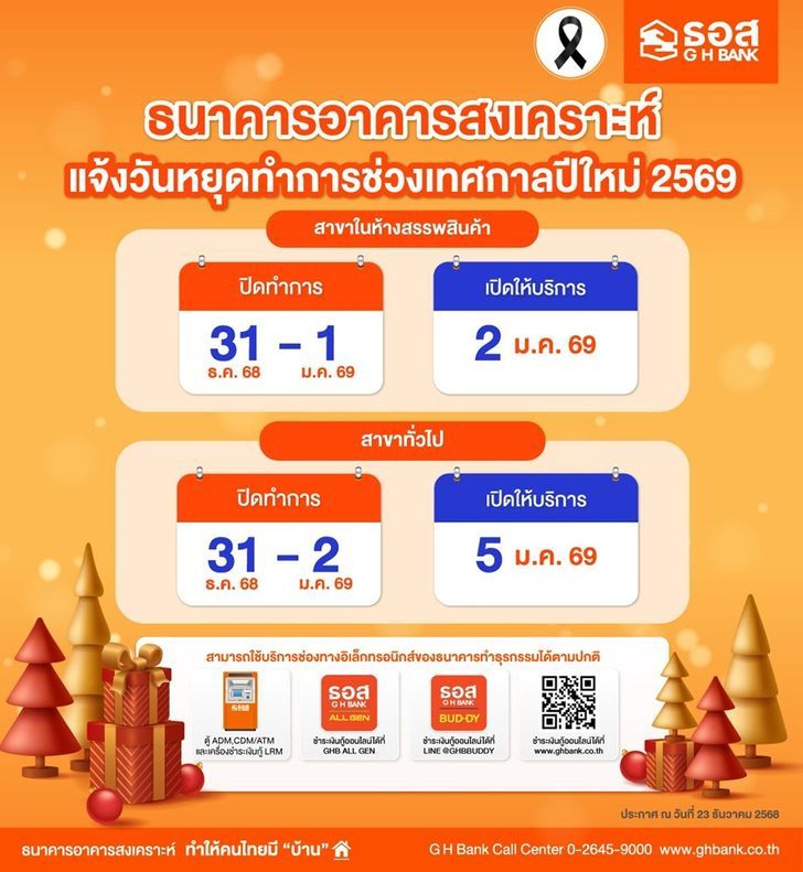 The BOT has designated the following as traditional holidays for financial institutions for the transition into 2026: