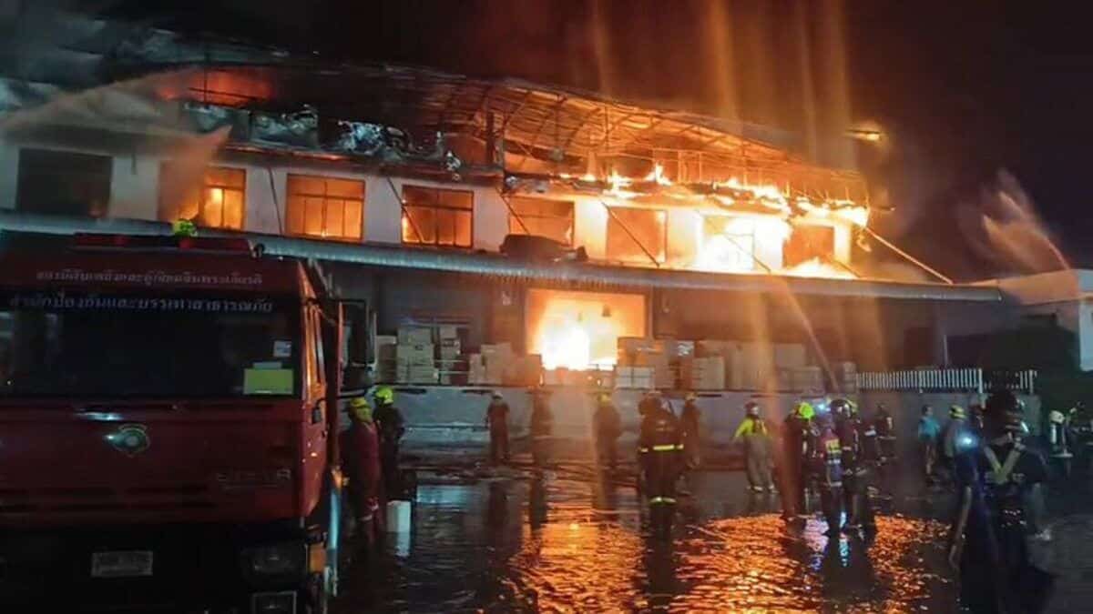 This morning, the blaze was brought under control by firefighters, although efforts are still underway to fully extinguish the factory. Surachit indicated that prolonged fire exposure and accumulated heat increase the risk of building collapse.