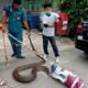 A local volunteer rescue team came to retrieve the snake. The father took the mother to the hospital. She received stitches from the snake bite and self-inflicted wounds from the cutter.