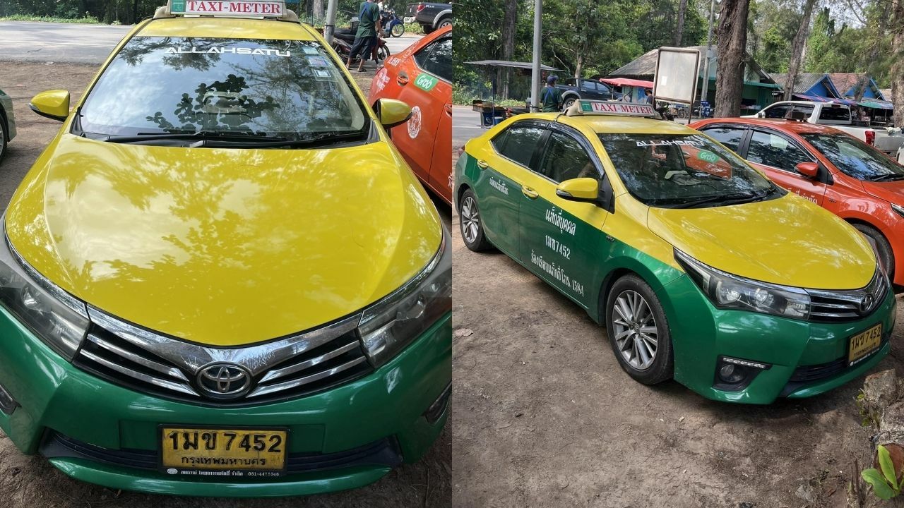 The driver has urged anyone who spots the green and yellow taxi with registration number 1 มข 7452 Bangkok to contact JS100 Radio via *1808 or 1137.