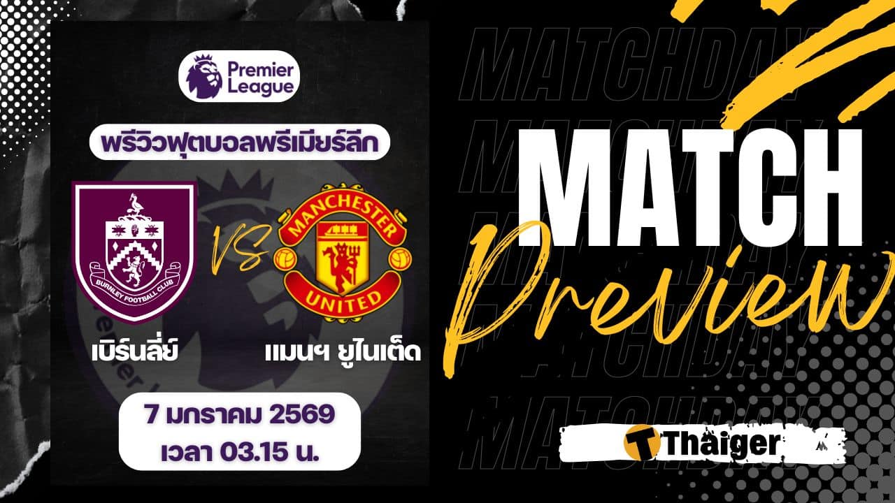 7 มกราคม 2569 เวลา 03.15 น. ถ่ายทอดสด ดูบอลสด ฟุตบอล พรีเมียร์ลีก ฤดูกาล 2025/26 ที่สนาม เทิร์ฟ มัวร์ เบิร์นลี่ย์ พบ แมนยู The Thaiger พาไปวิเคราะห์เกม พร้อมการทำนายผล และคาดการณ์ 11 ตัวจริงได้ที่นี่ ดูบอลสด พรีเมียร์ลีก เบิร์นลี่ย์ VS แมนยู ลิงก์ดูอ...