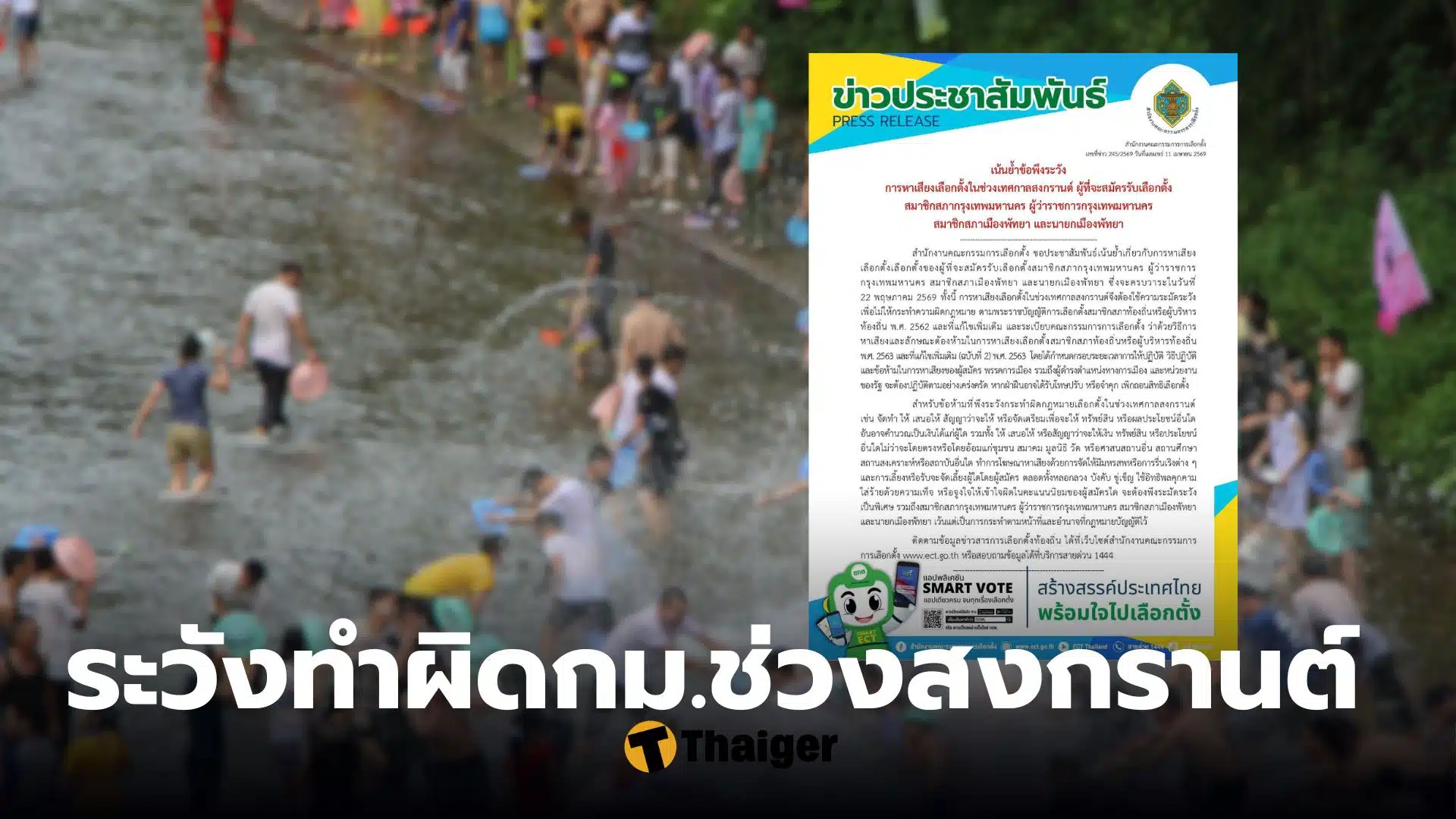 กกต. เตือนผู้จะลงสมัครผู้ว่าฯกทม. ส.ก. และเมืองพัทยา ระวังทำผิดกม.เลือกตั้ง ห้วงสงกรานต์ หากฝ่าฝืนมีโทษปรับ-จำคุก โทษหนักถึงขั้นเพิกถอนสิทธิเลือกตั้ง วันนี้ (11 เม.ย.) สำนักงานคณะกรรมการการเลือกตั้ง (กกต.) เผยแพร่ข่าวเลขที่ 245/2569 เน้นย้ำข้อพึงระวั...