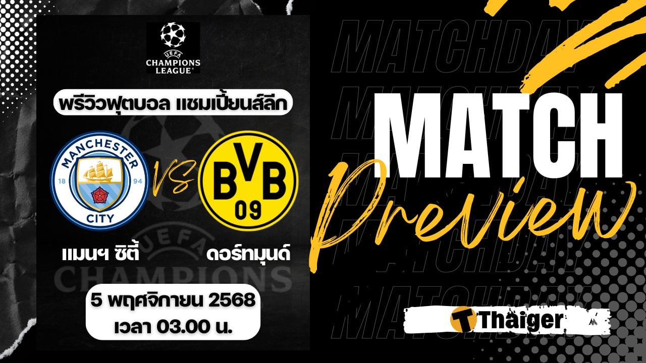 5 พฤศจิกายน 68 ดูบอลสด ฟุตบอล ยูฟ่า แชมเปี้ยนส์ ลีก รอบลีกเฟส นัดที่ 4 ระหว่าง แมนซิตี้ พบ ดอร์ทมุนด์ ที่สนาม เอติฮัด สเตเดี้ยม เวลา 03:00 น. ตามเวลาประเทศไทย พร้อมถ่ายทอดสด