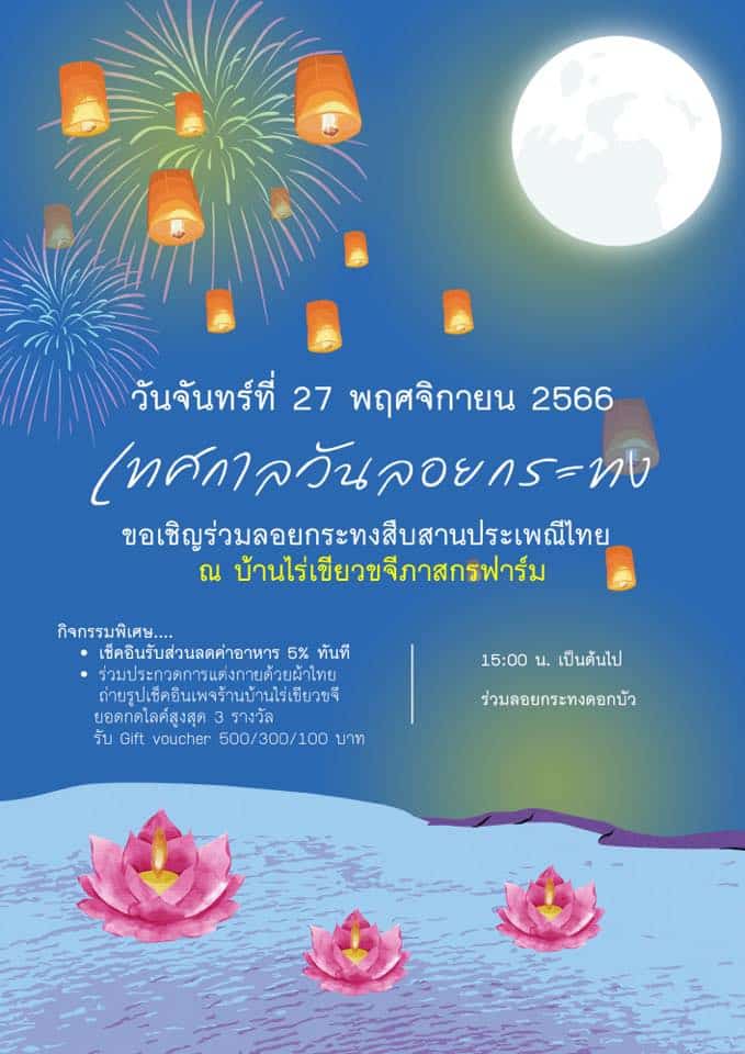 6. งานลอยกระทงสืบสานประเพณีไทย ณ บ้านไร่เขียวขจี ภาสกรฟาร์ม