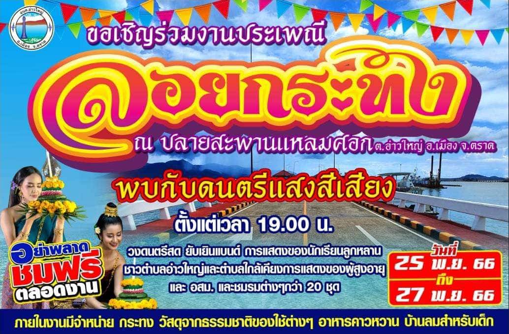 รวมสถานที่จัดงานวันลอยกระทง จังหวัดตราด 2566