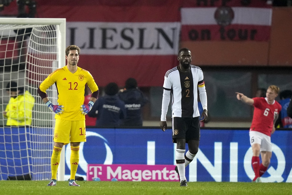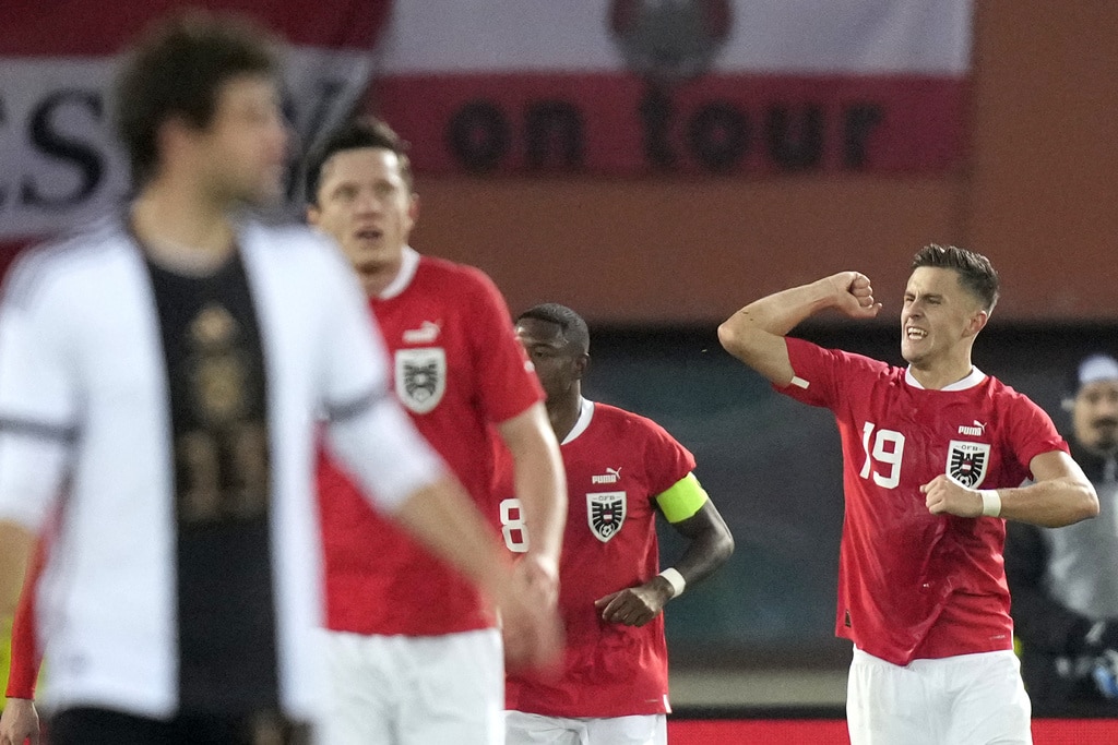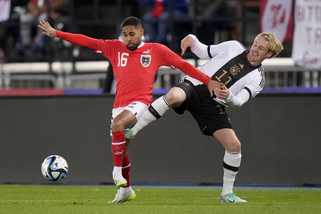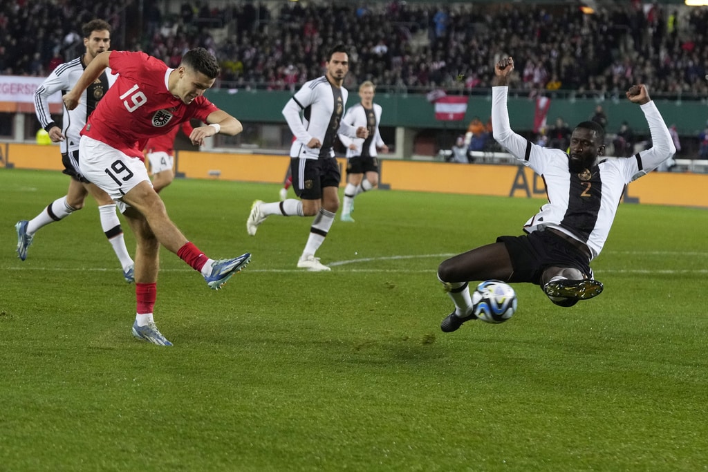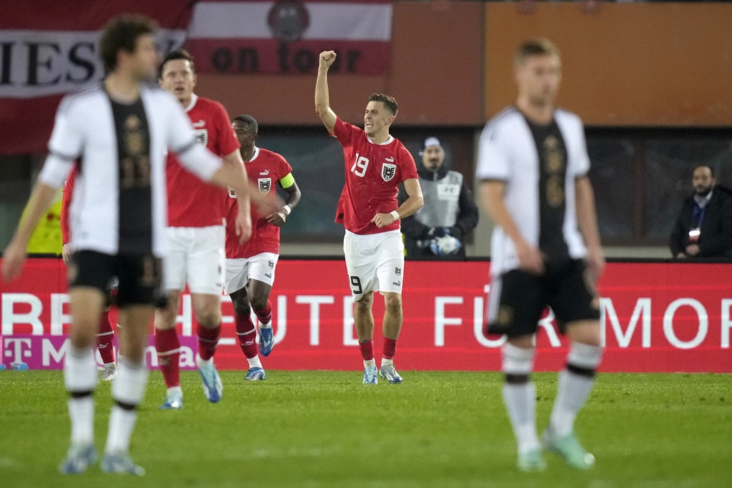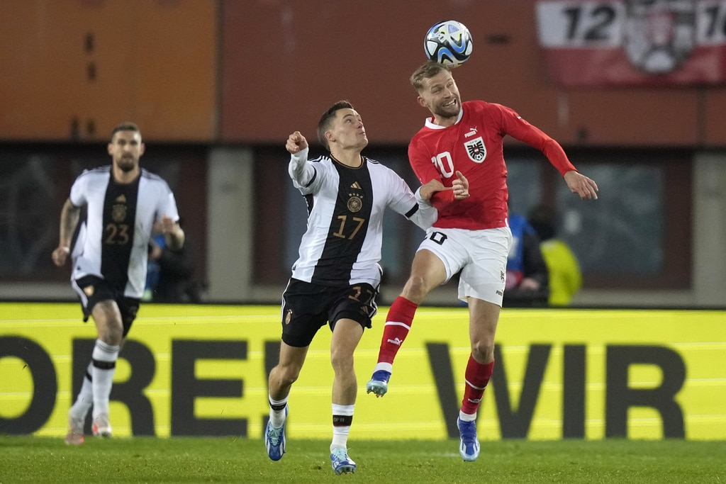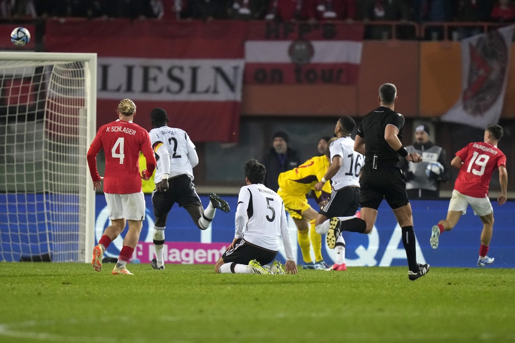 Germany’s Julian Brandt, right, battles for the ball with Austria’s Phillipp Mwene during the international friendly soccer match between Austria and Germany at the Ernst Happel stadium in Vienna, Austria, Tuesday, Nov. 21, 2023. (AP Photo/Matthias Schrader)Players congratulate each other after the international friendly soccer match between Austria and Germany at the Ernst Happel stadium in Vienna, Austria, Tuesday, Nov. 21, 2023. (AP Photo/Matthias Schrader)Germany’s goalkeeper Kevin Trapp, left, reacts during the international friendly soccer match between Austria and Germany at the Ernst Happel stadium in Vienna, Austria, Tuesday, Nov. 21, 2023. (AP Photo/Matthias Schrader)Austria’s Christoph Baumgartner, right, scores his sides second goal during the international friendly soccer match between Austria and Germany at the Ernst Happel stadium in Vienna, Austria, Tuesday, Nov. 21, 2023. (AP Photo/Matthias Schrader)Austria’s Sasa Kalajdzic, right, goes up against Germany’s Mats Hummels, center, during the international friendly soccer match between Austria and Germany at the Ernst Happel stadium in Vienna, Austria, Tuesday, Nov. 21, 2023. (AP Photo/Matthias Schrader)Germany’s Jonathan Tah, left, and Austria’s Maximilian Wober vie for the ball during the international friendly soccer match between Austria and Germany at the Ernst Happel stadium in Vienna, Austria, Tuesday, Nov. 21, 2023. (AP Photo/Matthias Schrader)Germany react after Austria scored thier sides second goal during the international friendly soccer match between Austria and Germany at the Ernst Happel stadium in Vienna, Austria, Tuesday, Nov. 21, 2023. (AP Photo/Matthias Schrader)Austria’s Christoph Baumgartner, right, celebrates after scoring his sides second goal during the international friendly soccer match between Austria and Germany at the Ernst Happel stadium in Vienna, Austria, Tuesday, Nov. 21, 2023. (AP Photo/Matthias Schrader)Austria’s Christoph Baumgartner, center, celebrates after scoring his sides second goal during the international friendly soccer match between Austria and Germany at the Ernst Happel stadium in Vienna, Austria, Tuesday, Nov. 21, 2023. (AP Photo/Matthias Schrader)Austria’s David Alaba, left, goes up for the ball during the international friendly soccer match between Austria and Germany at the Ernst Happel stadium in Vienna, Austria, Tuesday, Nov. 21, 2023. (AP Photo/Matthias Schrader)Germany’s Florian Wirtz, center, battles for the ball with Austria’s Konrad Laimer during the international friendly soccer match between Austria and Germany at the Ernst Happel stadium in Vienna, Austria, Tuesday, Nov. 21, 2023. (AP Photo/Matthias Schrader)Germany’s coach Julian Nagelsmann during the international friendly soccer match between Austria and Germany at the Ernst Happel stadium in Vienna, Austria, Tuesday, Nov. 21, 2023. (AP Photo/Matthias Schrader)Germany’s Antonio Rudiger, right, defends against a shot by Austria’s Christoph Baumgartner during the international friendly soccer match between Austria and Germany at the Ernst Happel stadium in Vienna, Austria, Tuesday, Nov. 21, 2023. (AP Photo/Matthias Schrader)