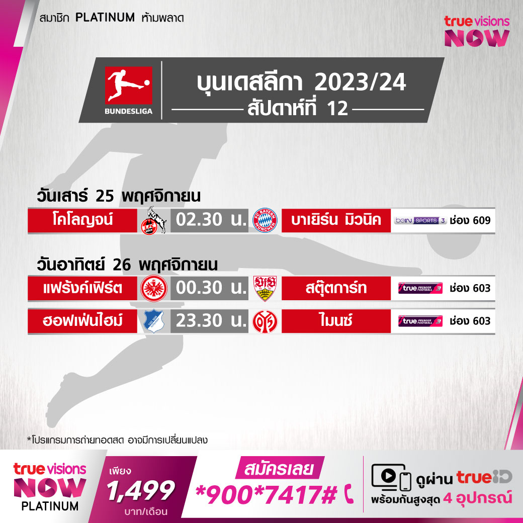 - 00:30 แฟร้งค์เฟิร์ต พบ สตุ๊ตการ์ท PPTV / True Premiere 3