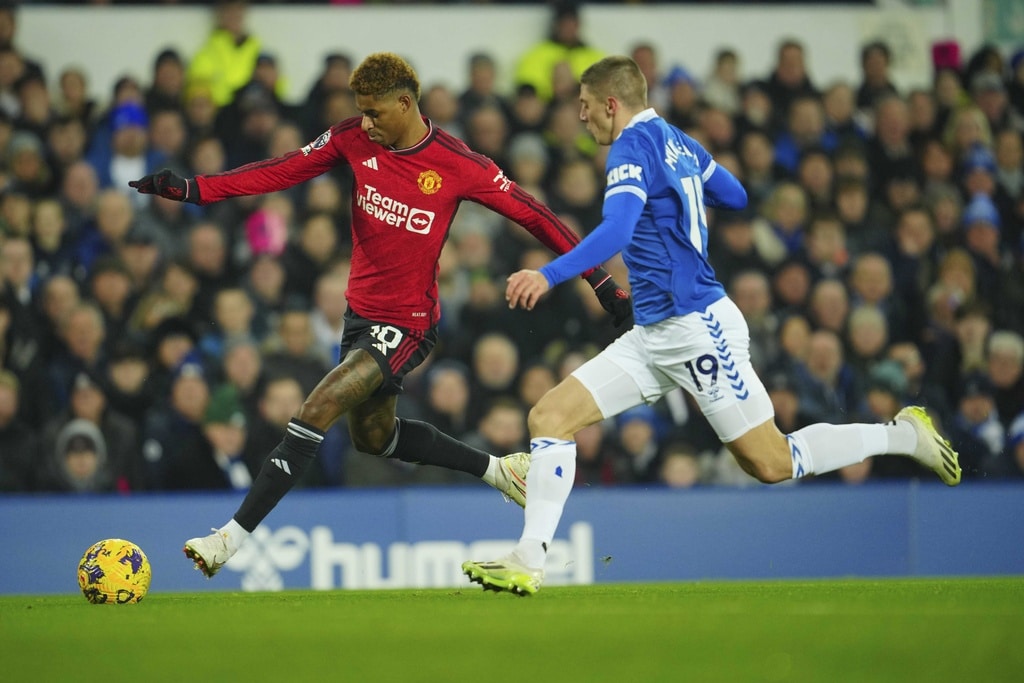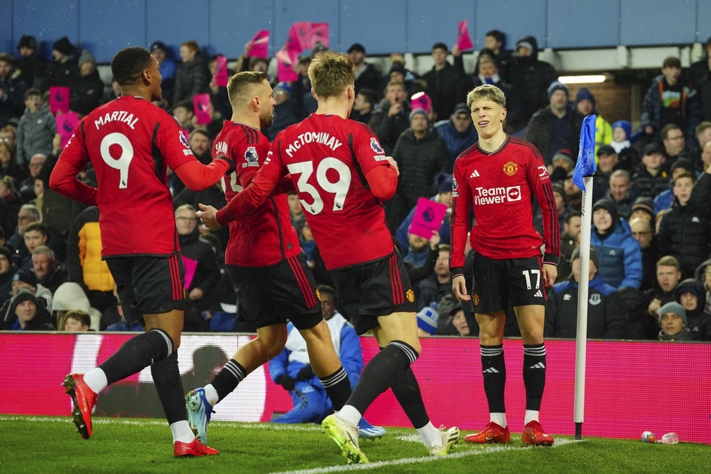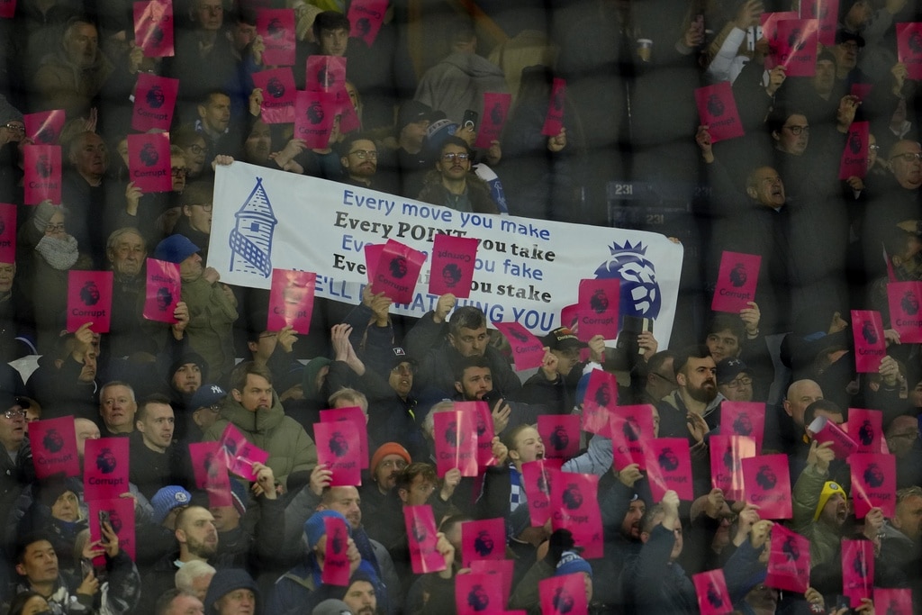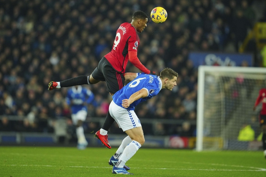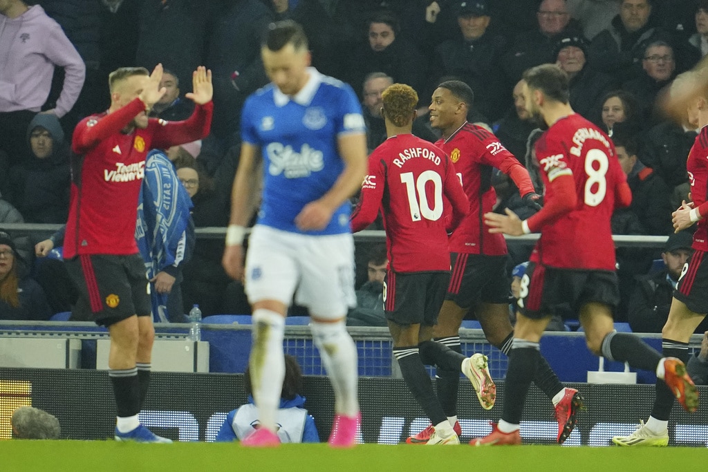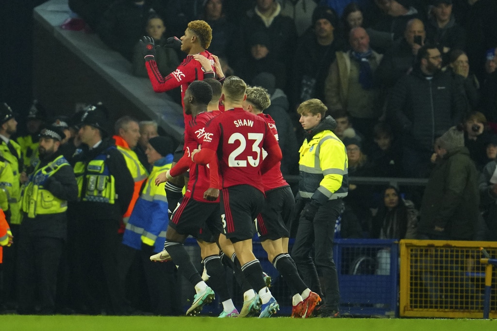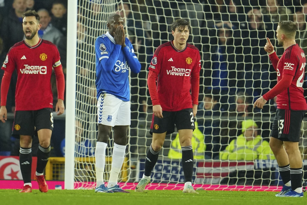 Everton supporters show cards reading ‘corrupt’ during the English Premier League soccer match between Everton and Manchester United, at Goodison Park Stadium, in Liverpool, England, Sunday , Nov. 26, 2023. (AP Photo/Jon Super)Manchester United’s Harry Maguire hugs with Everton’s James Garner at the end of the English Premier League soccer match between Everton and Manchester United, at Goodison Park Stadium, in Liverpool, England, Sunday , Nov. 26, 2023. (AP Photo/Jon Super)Manchester United’s Diogo Dalot and his teammate Manchester United’s Victor Lindelof celebrate at the end of the English Premier League soccer match between Everton and Manchester United, at Goodison Park Stadium, in Liverpool, England, Sunday , Nov. 26, 2023. (AP Photo/Jon Super)Manchester United’s Marcus Rashford, left, challenges for the ball with Everton’s Nathan Patterson during the English Premier League soccer match between Everton and Manchester United, at Goodison Park Stadium, in Liverpool, England, Sunday , Nov. 26, 2023. (AP Photo/Jon Super)Manchester United’s Bruno Fernandes, left, challenges for the ball with Everton’s Idrissa Gueye during the English Premier League soccer match between Everton and Manchester United, at Goodison Park Stadium, in Liverpool, England, Sunday , Nov. 26, 2023. (AP Photo/Jon Super)Manchester United’s Anthony Martial celebrates with his teammates after scoring his side’s third goal during the English Premier League soccer match between Everton and Manchester United, at Goodison Park Stadium, in Liverpool, England, Sunday , Nov. 26, 2023. (AP Photo/Jon Super)Manchester United’s Marcus Rashford celebrates after scoring his side’s second goal on a penalty kick during the English Premier League soccer match between Everton and Manchester United, at Goodison Park Stadium, in Liverpool, England, Sunday , Nov. 26, 2023. (AP Photo/Jon Super)Manchester United’s Marcus Rashford scores his side’s second goal on a penalty kick during the English Premier League soccer match between Everton and Manchester United, at Goodison Park Stadium, in Liverpool, England, Sunday , Nov. 26, 2023. (AP Photo/Jon Super)Everton’s Abdoulaye Doucoure gestures after missing a scoring chance during the English Premier League soccer match between Everton and Manchester United, at Goodison Park Stadium, in Liverpool, England, Sunday , Nov. 26, 2023. (AP Photo/Jon Super)Manchester United’s Anthony Martial goes for the header with Everton’s James Tarkowski during the English Premier League soccer match between Everton and Manchester United, at Goodison Park Stadium, in Liverpool, England, Sunday , Nov. 26, 2023. (AP Photo/Jon Super)Manchester United’s Alejandro Garnacho is tackled by Everton’s Ashley Young during the English Premier League soccer match between Everton and Manchester United, at Goodison Park Stadium, in Liverpool, England, Sunday , Nov. 26, 2023. (AP Photo/Jon Super)Manchester United’s Alejandro Garnacho controls the ball during the English Premier League soccer match between Everton and Manchester United, at Goodison Park Stadium, in Liverpool, England, Sunday , Nov. 26, 2023. (AP Photo/Jon Super)Manchester United’s Marcus Rashford challenges for the ball with Everton’s Vitaliy Mykolenko during the English Premier League soccer match between Everton and Manchester United, at Goodison Park Stadium, in Liverpool, England, Sunday , Nov. 26, 2023. (AP Photo/Jon Super)Manchester United’s Alejandro Garnacho scores his side’s first goal during the English Premier League soccer match between Everton and Manchester United, at Goodison Park Stadium, in Liverpool, England, Sunday , Nov. 26, 2023. (AP Photo/Jon Super)Manchester United’s Alejandro Garnacho celebrates after scoring his side’s first goal during the English Premier League soccer match between Everton and Manchester United, at Goodison Park Stadium, in Liverpool, England, Sunday , Nov. 26, 2023. (AP Photo/Jon Super)Manchester United’s Alejandro Garnacho celebrates after scoring his side’s first goal during the English Premier League soccer match between Everton and Manchester United, at Goodison Park Stadium, in Liverpool, England, Sunday , Nov. 26, 2023. (AP Photo/Jon Super)