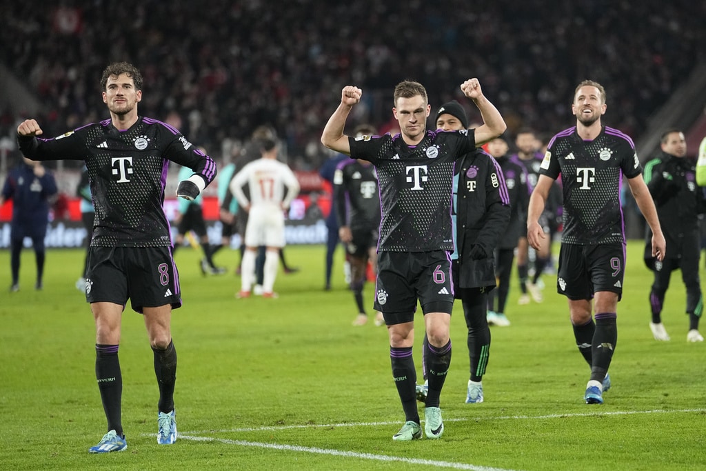 Bayern’s Kim Min-jae, left, jumps for the ball with Cologne’s Davie Selke during the German Bundesliga soccer match between 1.FC Cologne and Bayern Munich in Cologne, Germany, Friday, Nov. 24, 2023. (AP Photo/Martin Meissner)Bayern’s Harry Kane celebrates with his teammates after winning the German Bundesliga soccer match between 1.FC Cologne and Bayern Munich in Cologne, Germany, Friday, Nov. 24, 2023. Bayern won 1-0. (AP Photo/Martin Meissner)Bayern’s Harry Kane celebrates after winning the German Bundesliga soccer match between 1.FC Cologne and Bayern Munich in Cologne, Germany, Friday, Nov. 24, 2023. Bayern won 1-0. (AP Photo/Martin Meissner)Bayern’s players celebrate after winning the German Bundesliga soccer match between 1.FC Cologne and Bayern Munich in Cologne, Germany, Friday, Nov. 24, 2023. Bayern won 1-0. (AP Photo/Martin Meissner)Bayern’s Leon Goretzka, left, jumps for the ball with Cologne’s Rasmus Carstensen during the German Bundesliga soccer match between 1.FC Cologne and Bayern Munich in Cologne, Germany, Friday, Nov. 24, 2023. (AP Photo/Martin Meissner)Bayern’s Leroy Sane reacts after missing a scoring chance during the German Bundesliga soccer match between 1.FC Cologne and Bayern Munich in Cologne, Germany, Friday, Nov. 24, 2023. (AP Photo/Martin Meissner)Bayern’s Kingsley Coman controls the ball during the German Bundesliga soccer match between 1.FC Cologne and Bayern Munich in Cologne, Germany, Friday, Nov. 24, 2023. (AP Photo/Martin Meissner)Bayern’s Leroy Sane, right, challenges for the ball with Cologne’s Luca Kilian during the German Bundesliga soccer match between 1.FC Cologne and Bayern Munich in Cologne, Germany, Friday, Nov. 24, 2023. (AP Photo/Martin Meissner)Bayern’s Harry Kane, left, challenges for the ball with Cologne’s Julian Chabot during the German Bundesliga soccer match between 1.FC Cologne and Bayern Munich in Cologne, Germany, Friday, Nov. 24, 2023. (AP Photo/Martin Meissner)Bayern’s Harry Kane celebrates after scoring his side’s opening goal during the German Bundesliga soccer match between 1.FC Cologne and Bayern Munich in Cologne, Germany, Friday, Nov. 24, 2023. (Rold Vennenbernd/dpa via AP)Bayern’s Eric Maxim Choupo-Moting, left, challenges for the ball with Cologne’s Eric Martel during the German Bundesliga soccer match between 1.FC Cologne and Bayern Munich in Cologne, Germany, Friday, Nov. 24, 2023. (AP Photo/Martin Meissner)
