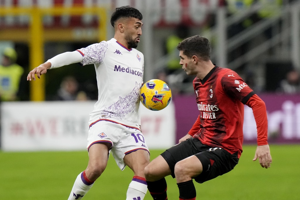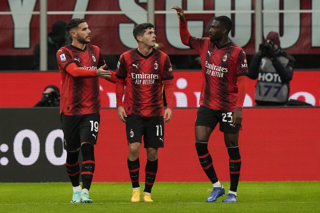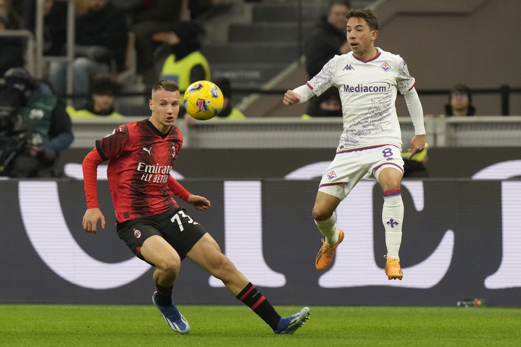 AC Milan’s Christian Pulisic, left, challenges for the ball with Fiorentina’s Nikola Milenkovic during a Serie A soccer match between AC Milan and Fiorentina, at the San Siro stadium in Milan, Italy, Saturday, Nov. 25, 2023. (AP Photo/Luca Bruno)AC Milan players celebrate at the end of a Serie A soccer match between AC Milan and Fiorentina, at the San Siro stadium in Milan, Italy, Saturday, Nov. 25, 2023. (AP Photo/Luca Bruno)AC Milan’s Theo Hernandez celebrates at the end of a Serie A soccer match between AC Milan and Fiorentina, at the San Siro stadium in Milan, Italy, Saturday, Nov. 25, 2023. (AP Photo/Luca Bruno)AC Milan’s Francesco Camarda challenges for the ball with Fiorentina’s Maxime Lopez during a Serie A soccer match between AC Milan and Fiorentina, at the San Siro stadium in Milan, Italy, Saturday, Nov. 25, 2023. (AP Photo/Luca Bruno)AC Milan Francesco Camara enters on the pitch during a Serie A soccer match between AC Milan and Fiorentina, at the San Siro stadium in Milan, Italy, Saturday, Nov. 25, 2023. (AP Photo/Luca Bruno)AC Milan’s Luka Jovic makes an attempt to score during a Serie A soccer match between AC Milan and Fiorentina, at the San Siro stadium in Milan, Italy, Saturday, Nov. 25, 2023. (AP Photo/Luca Bruno)AC Milan’s Theo Hernandez, left, falls as he is fouled upon by Fiorentina’s Fabiano Parisi during a Serie A soccer match between AC Milan and Fiorentina, in Milan’s San Siro Stadium, Italy, Saturday, Nov. 25, 2023. (Spada/LaPresse via AP)AC Milan’s Theo Hernandez shoots to score his side’s opening goal during a Serie A soccer match between AC Milan and Fiorentina, in Milan’s San Siro Stadium, Italy, Saturday, Nov. 25, 2023. (Spada/LaPresse via AP)AC Milan’s Theo Hernandez, left, celebrates after scoring his side’s opening goal during a Serie A soccer match between AC Milan and Fiorentina, in Milan’s San Siro Stadium, Italy, Saturday, Nov. 25, 2023. (Spada/LaPresse via AP)AC Milan’s Theo Hernandez, center, celebrates with teammates after scoring his side’s opening goal during a Serie A soccer match between AC Milan and Fiorentina, in Milan’s San Siro Stadium, Italy, Saturday, Nov. 25, 2023. (Spada/LaPresse via AP)AC Milan’s Theo Hernandez celebrates with his teammates Christian Pulisic and Fikayo Tomori after scoring his side’s first goal during a Serie A soccer match between AC Milan and Fiorentina, at the San Siro stadium in Milan, Italy, Saturday, Nov. 25, 2023. (AP Photo/Luca Bruno)AC Milan’s Theo Hernandez, left, celebrates after scoring his side’s opening goal during a Serie A soccer match between AC Milan and Fiorentina, in Milan’s San Siro Stadium, Italy, Saturday, Nov. 25, 2023. (Spada/LaPresse via AP)AC Milan’s Theo Hernandez, left, celebrates with teammate Luka Jović after scoring his side’s opening goal during a Serie A soccer match between AC Milan and Fiorentina, in Milan’s San Siro Stadium, Italy, Saturday, Nov. 25, 2023. (Spada/LaPresse via AP)Fiorentina’s Nicolas Gonzalez, left, challenges for the ball with AC Milan’s Christian Pulisic during a Serie A soccer match between AC Milan and Fiorentina, at the San Siro stadium in Milan, Italy, Saturday, Nov. 25, 2023. (AP Photo/Luca Bruno)