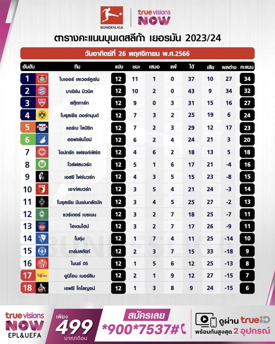 >> ตารางคะแนน บุนเดสลีกา เยอรมัน 2023 2024 ล่าสุด เช็คคะแนนทุกทีมได้ที่นี่ <<
