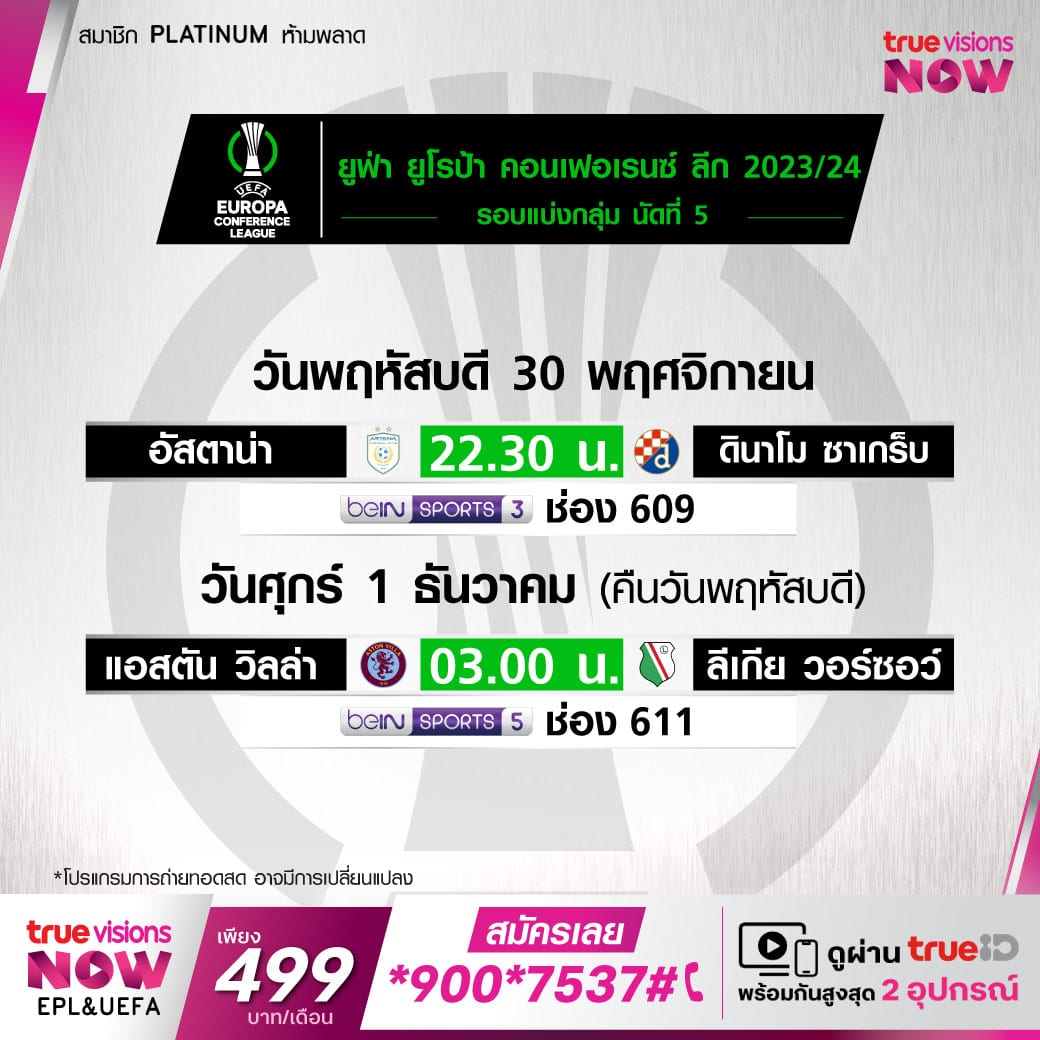 ยูโรป้า คอนเฟอเรนซ์ลีก รอบแบ่งกลุ่ม 2023/24 วันพฤหัสบดีที่ 30 พฤศจิกายน 2566