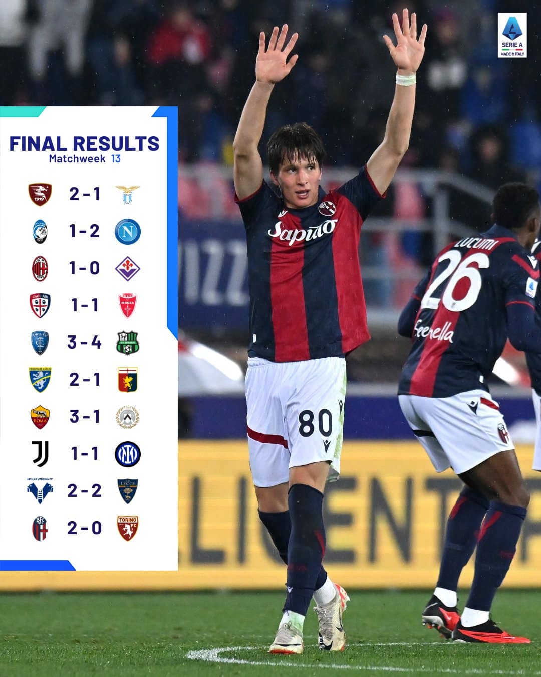 สรุปผลการแข่งขัน กัลโช่ เซเรียอา 2023/24 หลังจบนัดที่ 13