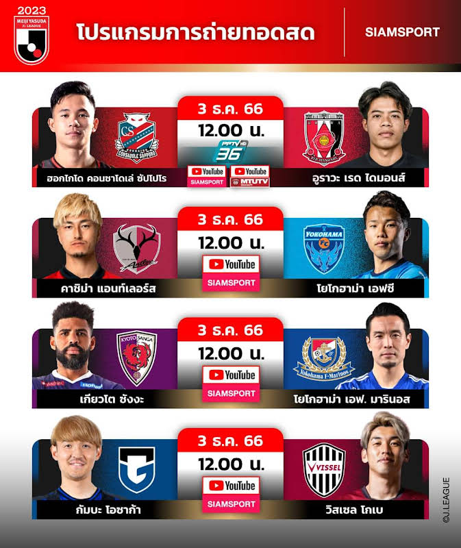 - 12:00 กัมบะ โอซาก้า พบ วิสเซล โคเบะ *ถ่ายทอดสดทาง Siamsport