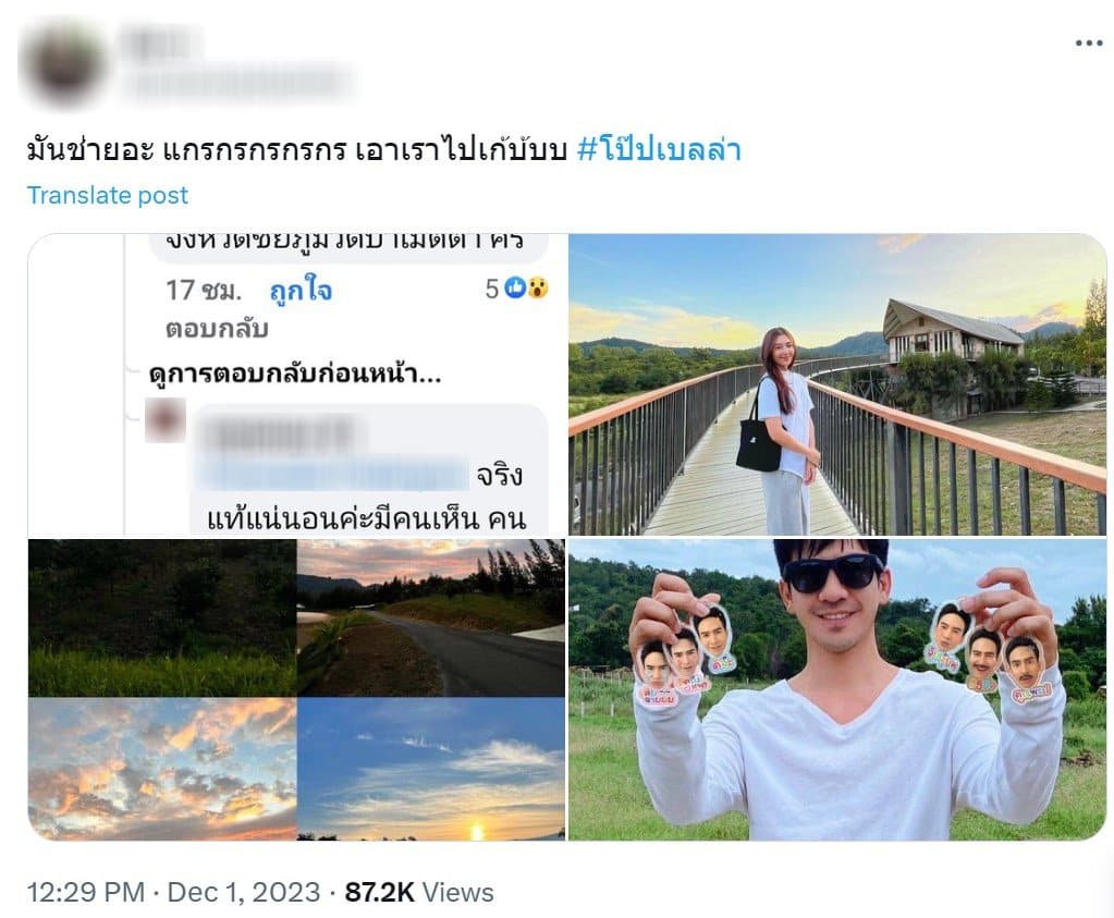 จากนั้นแฟนคลับติด #โป๊ปเบลล่า ในทวิตเตอร์ (X) สนั่น พร้อมกับมีแฟนคลับแชร์ภาพ 2 คู่จิ้น ที่ได้มาจากอินสตาแกรมส่วนตัวของสาวเบล @bellacampen และภาพจากอินสตาแกรมอาหารเสริมของโป๊ป @sanoplusbypope โดยภาพของทั้งสองมาในลุคเสื้อสีขาว แต่งตัวชิลคล้ายกัน แถมมีภาพบรรยากาศพระอาทิตย์กำลังตกดิน มุมคล้าย ต้นไม้คล้าย ออกมาไลเลี่ยกัน