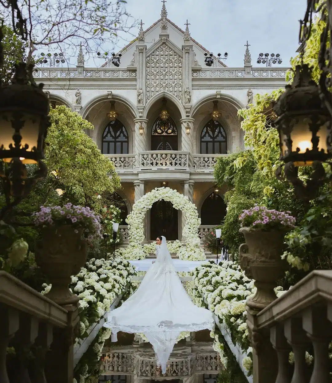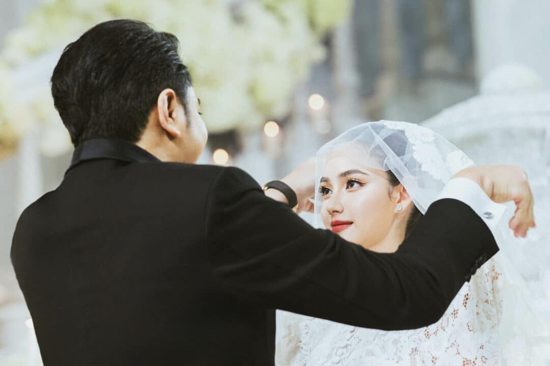 เพราะเป็นพิธีสำคัญของชีวิตคู่ บ่าวสาวเลือกสถานที่จัดงานแต่งแบบคริสเตียนดั้งเดิมที่ La Chapelle Bangkok ทั้งงานตกแต่งด้วยดอกไม้ White Hydrangea, White Rose, White Tulip, White Peony สีขาวละมุน ส่งตรงจากเมืองนอก รวมน้ำหนักกว่า 8,000 กิโลกรัม งบประมาณจัดงานราว ๆ 15 ล้านบาท