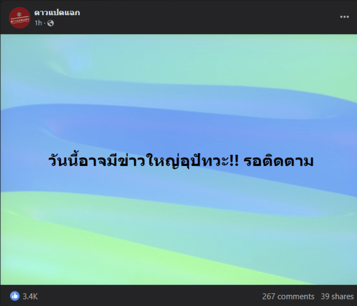 “วันนี้อาจมีข่าวใหญ่อุปัทวะ!! รอติดตาม” นี่คือข้อความที่ทางเพจระบุเอาไว้ ทิ้งให้ประชาชนรอติดตาม