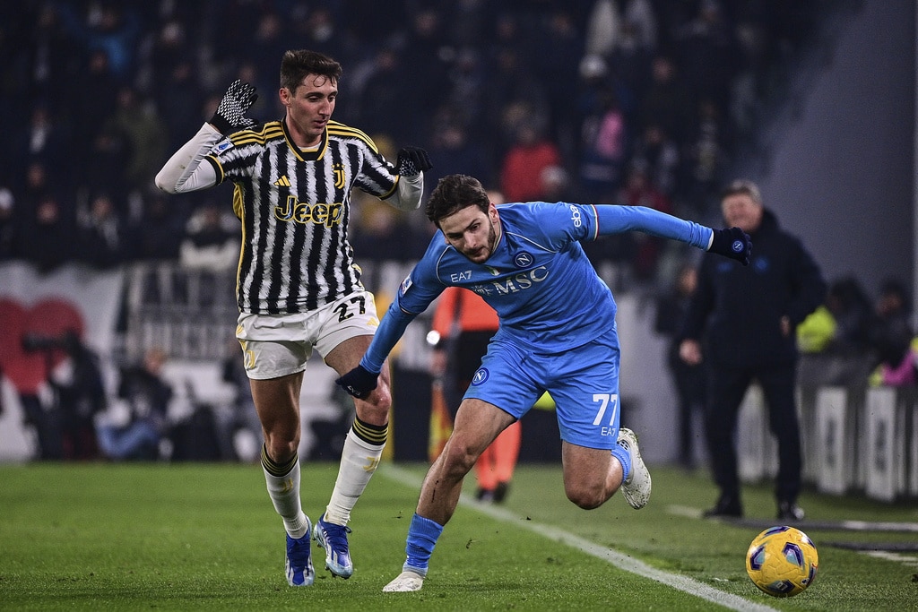 Juventus’ Andrea Cambiaso is challenged by Napoli’s Khvicha Kvaratskhelia, left, and Natan during the Serie A soccer match between Juventus and Napoli, at the Allianz stadium in Turin, Italy, Friday, Dec. 8, 2023. (Marco Alpozzi;/LaPresse via AP)Juventus’ Weston McKennie, right, Napoli’s Amir Rrahmani battle for the ball during the Serie A soccer match between Juventus and Napoli, at the Allianz stadium in Turin, Italy, Friday, Dec. 8, 2023. (Marco Alpozzi/LaPresse via AP)Juventus’ Federico Gatti celebrates scoring during the Serie A soccer match between Juventus and Napoli, at the Allianz stadium in Turin, Italy, Friday, Dec. 8, 2023. (Fabio Ferrari/LaPresse via AP)Juventus’ Federico Gatti, right, scores during the Serie A soccer match between Juventus and Napoli, at the Allianz stadium in Turin, Italy, Friday, Dec. 8, 2023. (Marco Alpozzi/LaPresse via AP)Juventus’ Andrea Cambiaso, right, and Napoli’s Khvicha Kvaratskhelia battle for the ball during the Serie A soccer match between Juventus and Napoli, at the Allianz stadium in Turin, Italy, Friday, Dec. 8, 2023. (Fabio Ferrari/LaPresse via AP)Napoli’s Natan, left, and Juventus’ Andrea Cambiaso battle for the ball during the Serie A soccer match between Juventus and Napoli, at the Allianz stadium in Turin, Italy, Friday, Dec. 8, 2023. (Marco Alpozzi;/LaPresse via AP)Juventus’ Andrea Cambiaso, left, and Napoli’s Khvicha Kvaratskhelia battle for the ball during the Serie A soccer match between Juventus and Napoli, at the Allianz stadium in Turin, Italy, Friday, Dec. 8, 2023. (Marco Alpozzi/LaPresse via AP)Juventus’ Bremer, left, and Napoli’s Victor Osimhen battle for the ball during the Serie A soccer match between Juventus and Napoli, at the Allianz stadium in Turin, Italy, Friday, Dec. 8, 2023. (Fabio Ferrari/LaPresse via AP)Juventus’ Andrea Cambiaso, left, and Napoli’s Khvicha Kvaratskhelia during the Serie A soccer match between Juventus and Napoli, at the Allianz stadium in Turin, Italy, Friday, Dec. 8, 2023. (Marco Alpozzi/LaPresse via AP)Napoli’s Khvicha Kvaratskhelia and Juventus’ Andrea Cambiaso, right, during the Serie A soccer match between Juventus and Napoli, at the Allianz stadium in Turin, Italy, Friday, Dec. 8, 2023. (Marco Alpozzi;/LaPresse via AP)Napoli’s Giacomo Raspadori is challenged by Juventus’ Adrien Rabiot, second left, Filip Kostic and Manuel Locatelli, right, during the Serie A soccer match between Juventus and Napoli, at the Allianz stadium in Turin, Italy, Friday, Dec. 8, 2023. (Fabio Ferrari/LaPresse via AP)Juventus’s Federico Gatti, left, celebrates scoring with teammate Dusan Vlahovic during the Serie A soccer match between Jjventus and Napoli, at the Allianz stadium in Turin, Italy, Friday, Dec. 8, 2023. (Marco Alpozzi;/LaPresse via AP)
