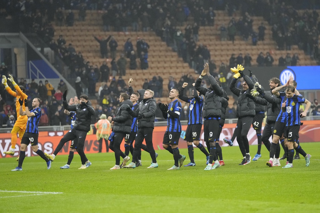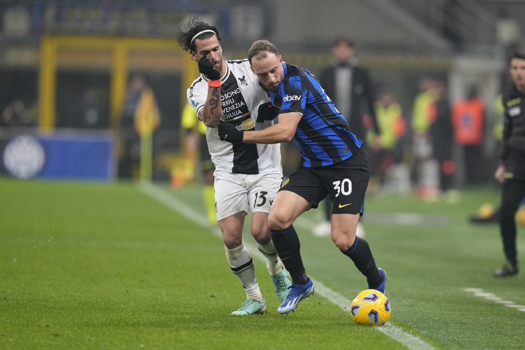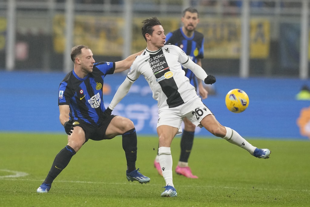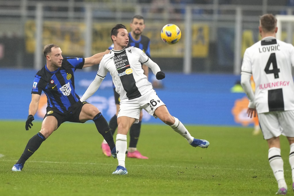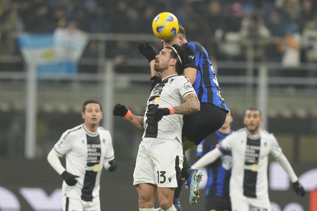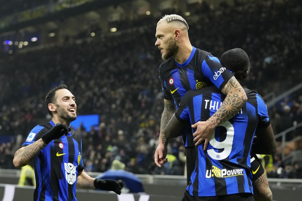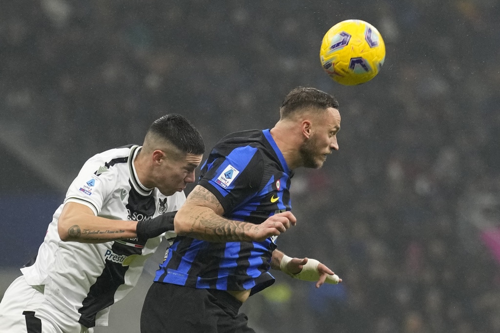 Inter Milan’s Marcus Thuram, centre, scores his side’s third goal past Udinese’s goalkeeper Marco Silvestri during the Serie A soccer match between Inter Milan and Udinese at the San Siro Stadium in Milan, Italy, Saturday, Dec. 9, 2023. (AP Photo/Antonio Calanni)Inter Milan’s Lautaro Martinez celebrates after scoring his side’s fourth goal during the Serie A soccer match between Inter Milan and Udinese at the San Siro Stadium in Milan, Italy, Saturday, Dec. 9, 2023. (AP Photo/Antonio Calanni)Inter Milan’s Carlos Augusto, left, and Udinese’s Florian Thauvin challenge for the ball during the Serie A soccer match between Inter Milan and Udinese at the San Siro Stadium in Milan, Italy, Saturday, Dec. 9, 2023. (AP Photo/Antonio Calanni)Inter Milan’s Carlos Augusto, left, and Udinese’s Florian Thauvin challenge for the ball during the Serie A soccer match between Inter Milan and Udinese at the San Siro Stadium in Milan, Italy, Saturday, Dec. 9, 2023. (AP Photo/Antonio Calanni)Inter Milan’s Carlos Augusto, top, and Udinese’s Joao Ferreira challenge for the ball during the Serie A soccer match between Inter Milan and Udinese at the San Siro Stadium in Milan, Italy, Saturday, Dec. 9, 2023. (AP Photo/Antonio Calanni)Inter Milan’s team players celebrate after the Serie A soccer match between Inter Milan and Udinese at the San Siro Stadium in Milan, Italy, Saturday, Dec. 9, 2023. (AP Photo/Antonio Calanni)Inter Milan’s Carlos Augusto, right, and Udinese’s Joao Ferreira challenge for the ball during the Serie A soccer match between Inter Milan and Udinese at the San Siro Stadium in Milan, Italy, Saturday, Dec. 9, 2023. (AP Photo/Antonio Calanni)Inter Milan’s Marko Arnautovic, right, and Udinese’s Nehuen Perez challenge for the ball during the Serie A soccer match between Inter Milan and Udinese at the San Siro Stadium in Milan, Italy, Saturday, Dec. 9, 2023. (AP Photo/Antonio Calanni)Inter Milan’s Lautaro Martinez, right, and Udinese’s Martin Payero challenge for the ball during the Serie A soccer match between Inter Milan and Udinese at the San Siro Stadium in Milan, Italy, Saturday, Dec. 9, 2023. (AP Photo/Antonio Calanni)Inter Milan’s Federico Dimarco, top, celebrates with teammates after scoring his side’s second goal during the Serie A soccer match between Inter Milan and Udinese at the San Siro Stadium in Milan, Italy, Saturday, Dec. 9, 2023. (AP Photo/Antonio Calanni)Inter Milan’s Alessandro Bastoni, centre, challenges for the ball with Udinese’s Lazar Samardzic, left, and Festy Ebosele during the Serie A soccer match between Inter Milan and Udinese at the San Siro Stadium in Milan, Italy, Saturday, Dec. 9, 2023. (AP Photo/Antonio Calanni)Inter Milan’s head coach Simone Inzaghi gestures during the Serie A soccer match between Inter Milan and Udinese at the San Siro Stadium in Milan, Italy, Saturday, Dec. 9, 2023. (AP Photo/Antonio Calanni)Inter Milan’s Federico Dimarco celebrates after scoring his side’s second goal during the Serie A soccer match between Inter Milan and Udinese at the San Siro Stadium in Milan, Italy, Saturday, Dec. 9, 2023. (AP Photo/Antonio Calanni)Inter Milan’s Marcus Thuram, right, scores his side’s third goal past Udinese’s goalkeeper Marco Silvestri during the Serie A soccer match between Inter Milan and Udinese at the San Siro Stadium in Milan, Italy, Saturday, Dec. 9, 2023. (AP Photo/Antonio Calanni)