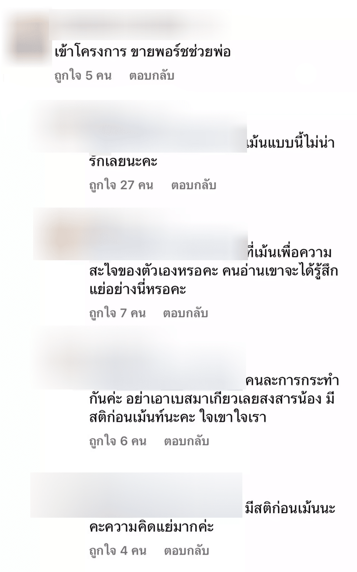 นอกจากนี้ ชาวเน็ตยังมองว่า การพิมพ์ข้อความคอมเมนต์ลักษณะนี้ เป็นการกระทำที่ไม่นึกถึงใจผู้อื่น เนื่องจากเบสท์ต้องเผชิญกับความเจ็บปวดมามากมายแล้ว และคนที่อยู่หลังแป้นพิมพ์ควรมีสติ ก่อนที่จะพิมพ์ข้อความอะไรที่สร้างความเจ็บปวดกับผู้อื่นด้วย