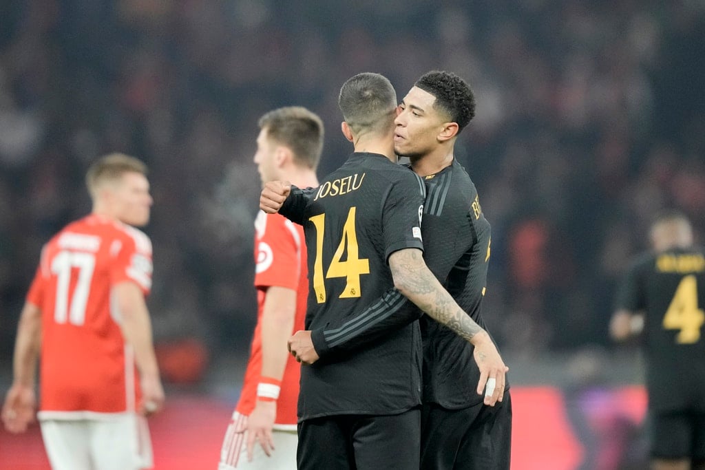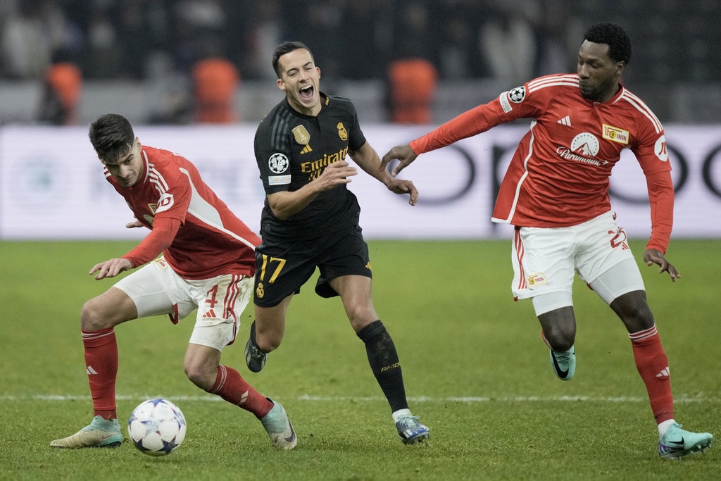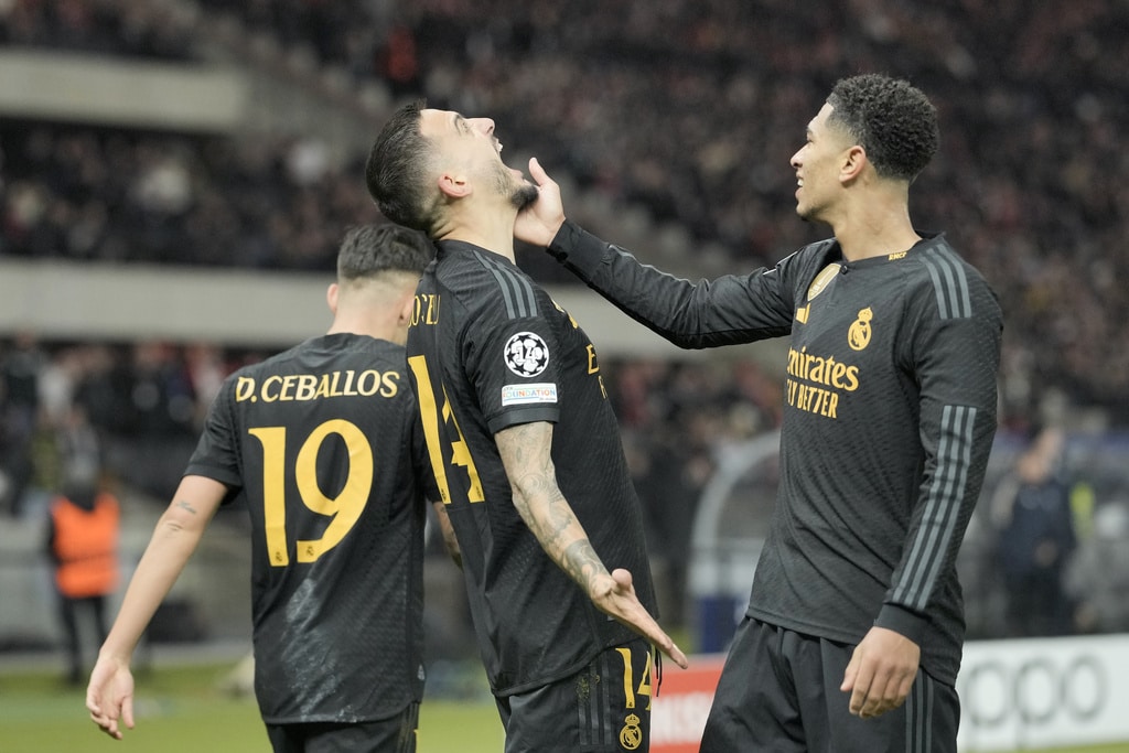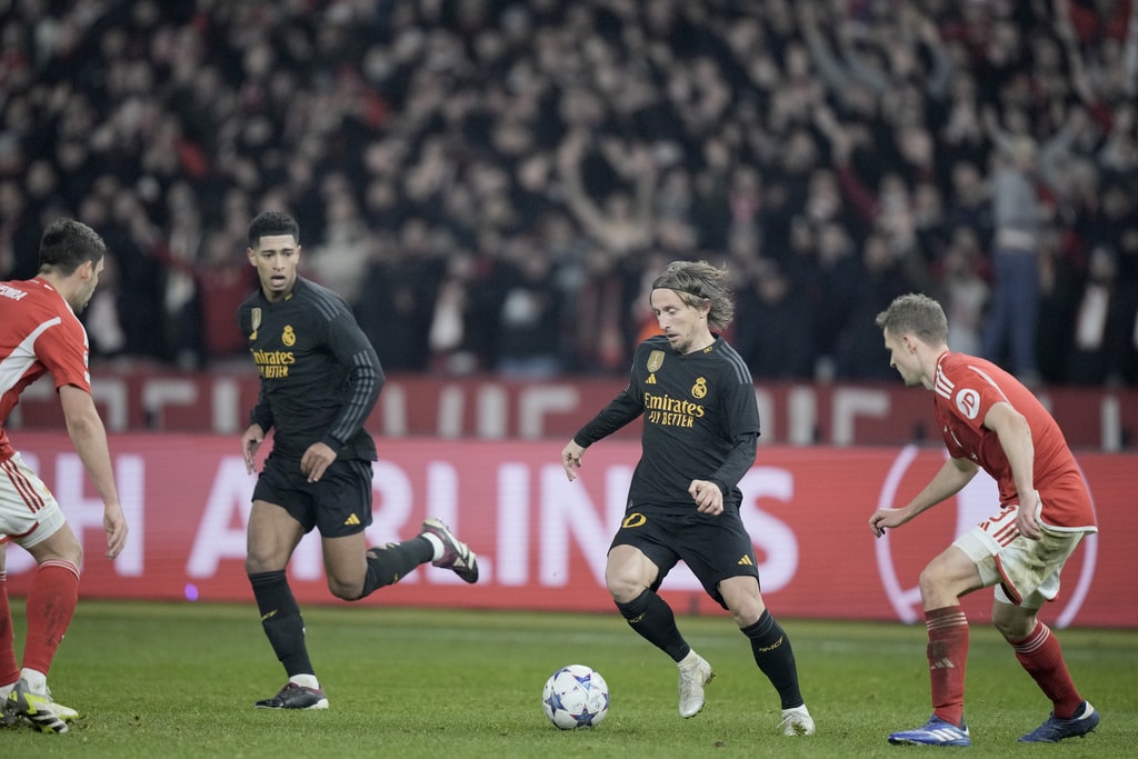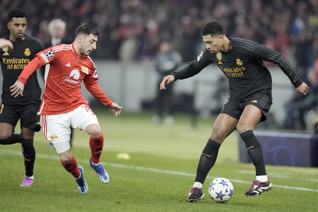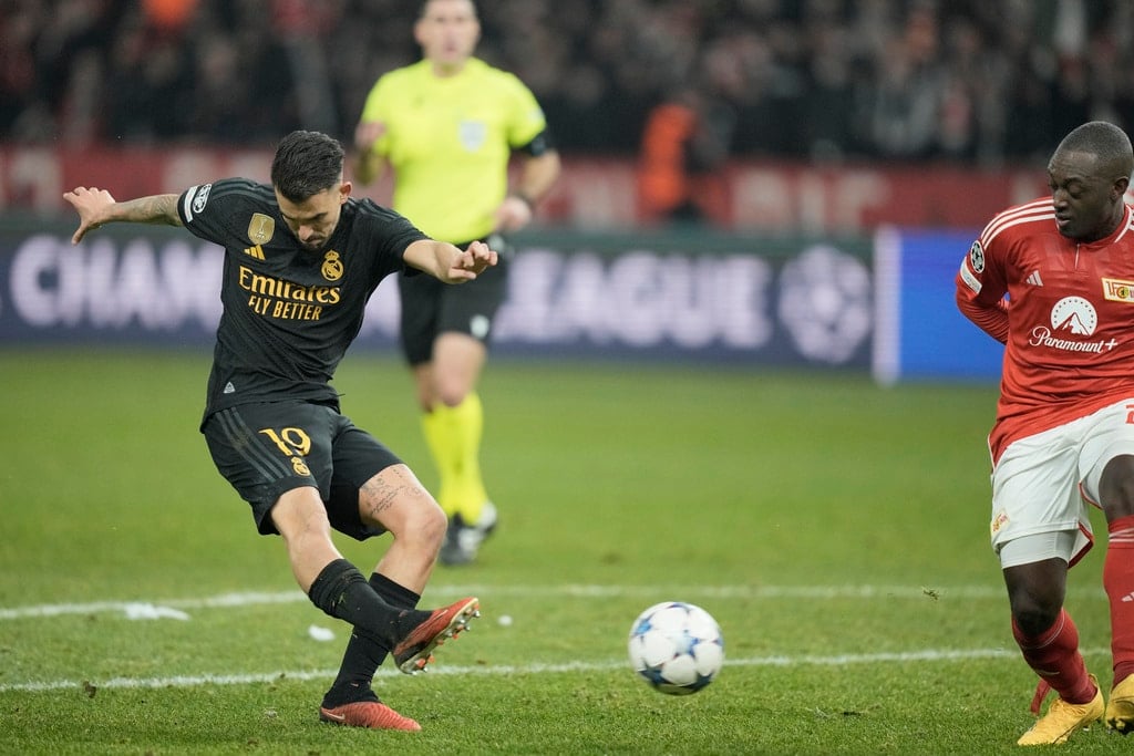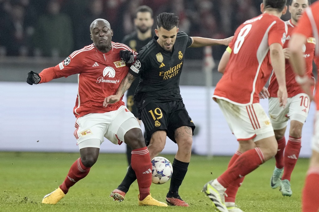 Real Madrid players pose before the Champions League group C soccer match between Union Berlin and Real Madrid at the Olympiastadion in Berlin, Tuesday, Dec. 12, 2023. (AP Photo/Markus Schreiber)Real Madrid’s Lucas Vazquez, center, fights for the ball with Union’s Diogo Leite and Sheraldo Becker, right, during the Champions League group C soccer match between Union Berlin and Real Madrid at the Olympiastadion in Berlin, Tuesday, Dec. 12, 2023. (AP Photo/Markus Schreiber)Real Madrid’s Dani Ceballos scores his side’s third goal during the Champions League group C soccer match between Union Berlin and Real Madrid at the Olympiastadion in Berlin, Tuesday, Dec. 12, 2023. (AP Photo/Markus Schreiber)Real Madrid’s Joselu celebrates with Jude Bellingham, right, after scoring his side’s second goal during the Champions League group C soccer match between Union Berlin and Real Madrid at the Olympiastadion in Berlin, Tuesday, Dec. 12, 2023. (AP Photo/Markus Schreiber)Real Madrid’s Joselu celebrates after scoring his side’s second goal during the Champions League group C soccer match between Union Berlin and Real Madrid at the Olympiastadion in Berlin, Tuesday, Dec. 12, 2023. (AP Photo/Markus Schreiber)Real Madrid’s Luka Modric runs with the ball during the Champions League group C soccer match between Union Berlin and Real Madrid at the Olympiastadion in Berlin, Tuesday, Dec. 12, 2023. (AP Photo/Markus Schreiber)Real Madrid’s Joselu, center, heads the ball to score his side’s first goal during the Champions League group C soccer match between Union Berlin and Real Madrid at the Olympiastadion in Berlin, Tuesday, Dec. 12, 2023. (AP Photo/Markus Schreiber)Real Madrid’s Joselu celebrates with Jude Bellingham, right, after scoring his side’s first goal during the Champions League group C soccer match between Union Berlin and Real Madrid at the Olympiastadion in Berlin, Tuesday, Dec. 12, 2023. (AP Photo/Markus Schreiber)Real Madrid’s head coach Carlo Ancelotti gestures during the Champions League group C soccer match between Union Berlin and Real Madrid at the Olympiastadion in Berlin, Tuesday, Dec. 12, 2023. (AP Photo/Markus Schreiber)Union’s Kevin Volland, right, celebrates after scoring the opening goal during the Champions League group C soccer match between Union Berlin and Real Madrid at the Olympiastadion in Berlin, Tuesday, Dec. 12, 2023. (AP Photo/Markus Schreiber)Real Madrid’s Dani Ceballos fights for the ball with Union’s Jerome Roussillon, left, during the Champions League group C soccer match between Union Berlin and Real Madrid at the Olympiastadion in Berlin, Tuesday, Dec. 12, 2023. (AP Photo/Markus Schreiber)Real Madrid’s Rodrygo, right, runs with the ball at Union’s Diogo Leite during the Champions League group C soccer match between Union Berlin and Real Madrid at the Olympiastadion in Berlin, Tuesday, Dec. 12, 2023. (AP Photo/Markus Schreiber)Real Madrid’s Jude Bellingham, right, controls the ball in front of Union’s Josip Juranovic during the Champions League group C soccer match between Union Berlin and Real Madrid at the Olympiastadion in Berlin, Tuesday, Dec. 12, 2023. (AP Photo/Markus Schreiber)