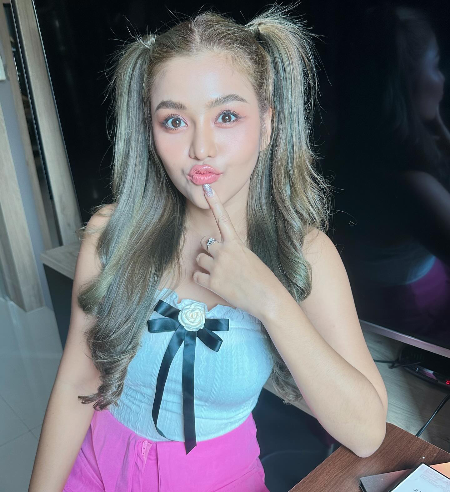บอกเลยว่าเอาอยู่ทุกมุม ยืนโพสพิงรถสปอร์ตสีชมพู จิกกล้องแตก จ้องรูปนี้นาน ๆ มีใจระทวย ยอมรับเลยว่าสไตล์นี้ลบภาพสาวน้อยธัญญ่าคนเดิมไปจนหมด