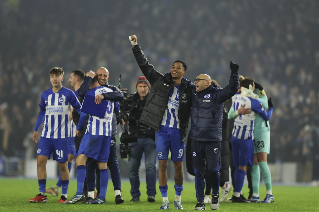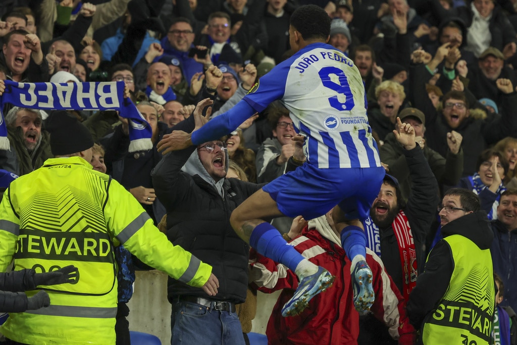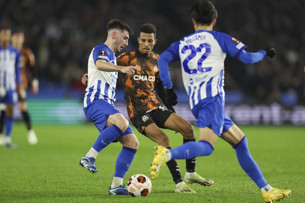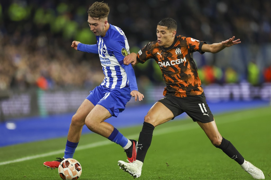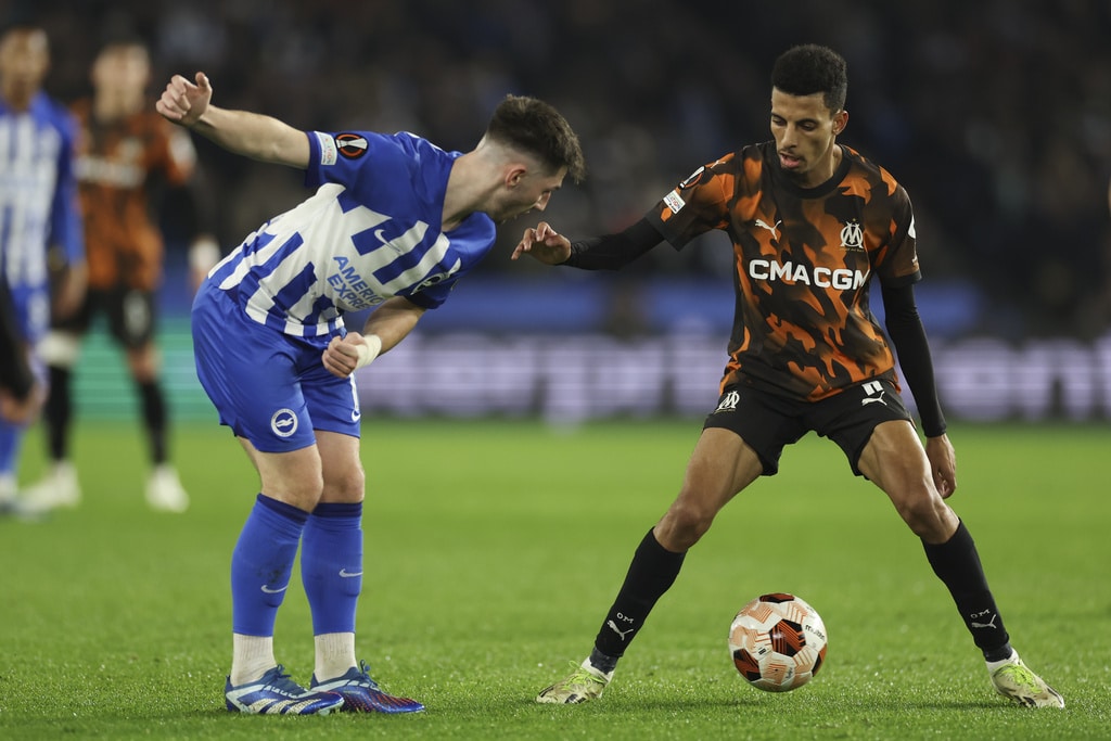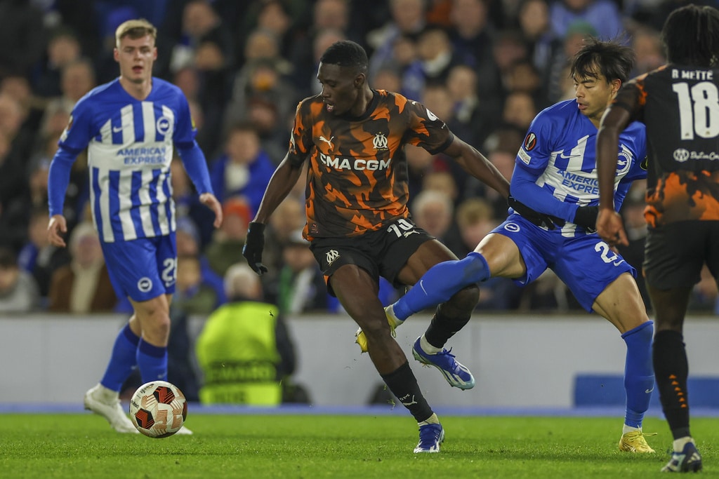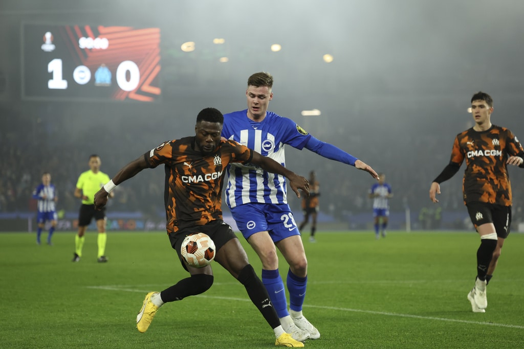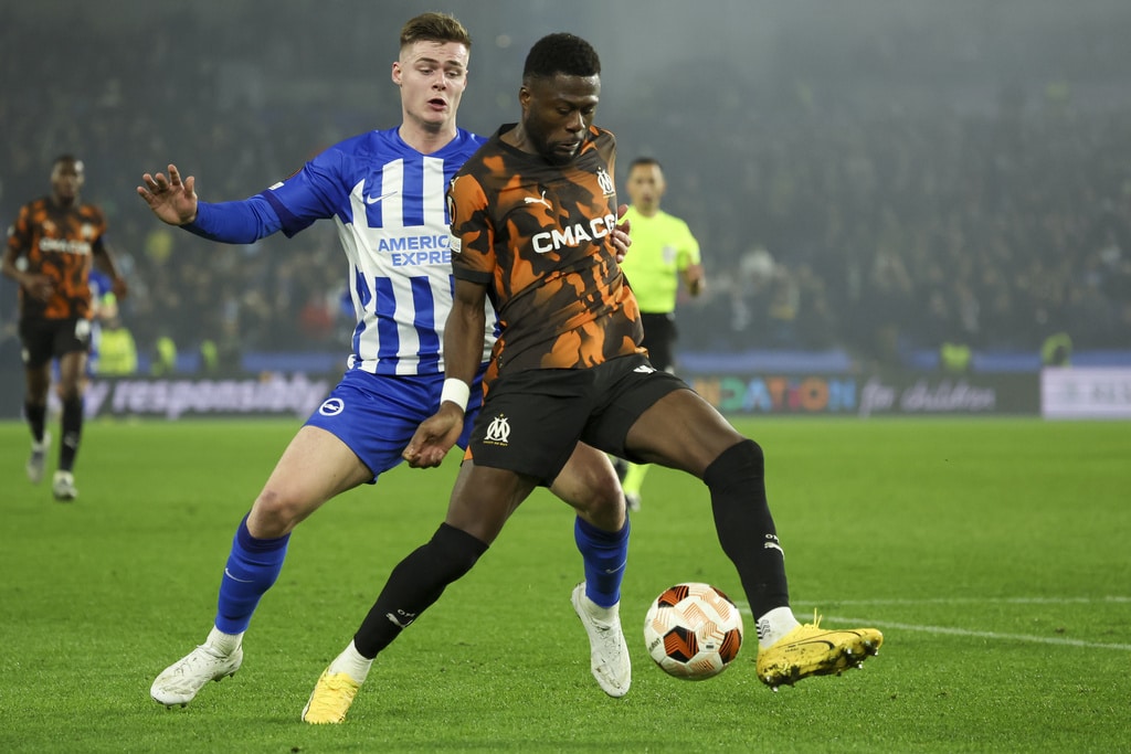 Marseille’s Chancel Mbemba, right, and Brighton’s Joao Pedro vie for the ball during the Europa League Group B soccer match between Brighton and Hove Albion and Olympique de Marseille at the Amex stadium in Brighton, England, Thursday, Dec. 14, 2023. (AP Photo/Ian Walton)Brighton’s Joao Pedro celebrates scoring his side’s opening goal during the Europa League Group B soccer match between Brighton and Hove Albion and Olympique de Marseille at the Amex stadium in Brighton, England, Thursday, Dec. 14, 2023. (AP Photo/Ian Walton)Marseille’s Chancel Mbemba, front, and Brighton’s Evan Ferguson vie for the ball during the Europa League Group B soccer match between Brighton and Hove Albion and Olympique de Marseille at the Amex stadium in Brighton, England, Thursday, Dec. 14, 2023. (AP Photo/Ian Walton)Marseille’s Chancel Mbemba, left, and Brighton’s Evan Ferguson vie for the ball during the Europa League Group B soccer match between Brighton and Hove Albion and Olympique de Marseille at the Amex stadium in Brighton, England, Thursday, Dec. 14, 2023. (AP Photo/Ian Walton)Brighton’s Joao Pedro, center, celebrates at the end of the Europa League Group B soccer match between Brighton and Hove Albion and Olympique de Marseille at the Amex stadium in Brighton, England, Thursday, Dec. 14, 2023. (AP Photo/Ian Walton)Brighton’s Joao Pedro scores his side’s opening goal during the Europa League Group B soccer match between Brighton and Hove Albion and Olympique de Marseille at the Amex stadium in Brighton, England, Thursday, Dec. 14, 2023. (AP Photo/Ian Walton)Brighton’s Joao Pedro celebrates scoring his side’s opening goal during the Europa League Group B soccer match between Brighton and Hove Albion and Olympique de Marseille at the Amex stadium in Brighton, England, Thursday, Dec. 14, 2023. (AP Photo/Ian Walton)Brighton’s Kaoru Mitoma, rights, fouls Marseille’s Iliman Ndiaye during the Europa League Group B soccer match between Brighton and Hove Albion and Olympique de Marseille at the Amex stadium in Brighton, England, Thursday, Dec. 14, 2023. (AP Photo/Ian Walton)Marseille’s Amine Harit, right, challenges Brighton’s Jack Hinshelwood during the Europa League Group B soccer match between Brighton and Hove Albion and Olympique de Marseille at the Amex stadium in Brighton, England, Thursday, Dec. 14, 2023. (AP Photo/Ian Walton)Marseille’s Iliman Ndiaye, front, goes for the ball during the Europa League Group B soccer match between Brighton and Hove Albion and Olympique de Marseille at the Amex stadium in Brighton, England, Thursday, Dec. 14, 2023. (AP Photo/Ian Walton)Brighton’s Billy Gilmour, left, dribbles the ball past Marseille’s Amine Harit, center, during the Europa League Group B soccer match between Brighton and Hove Albion and Olympique de Marseille at the Amex stadium in Brighton, England, Thursday, Dec. 14, 2023. (AP Photo/Ian Walton)Brighton’s Billy Gilmour, left, dribbles the ball past Marseille’s Amine Harit, center, during the Europa League Group B soccer match between Brighton and Hove Albion and Olympique de Marseille at the Amex stadium in Brighton, England, Thursday, Dec. 14, 2023. (AP Photo/Ian Walton)