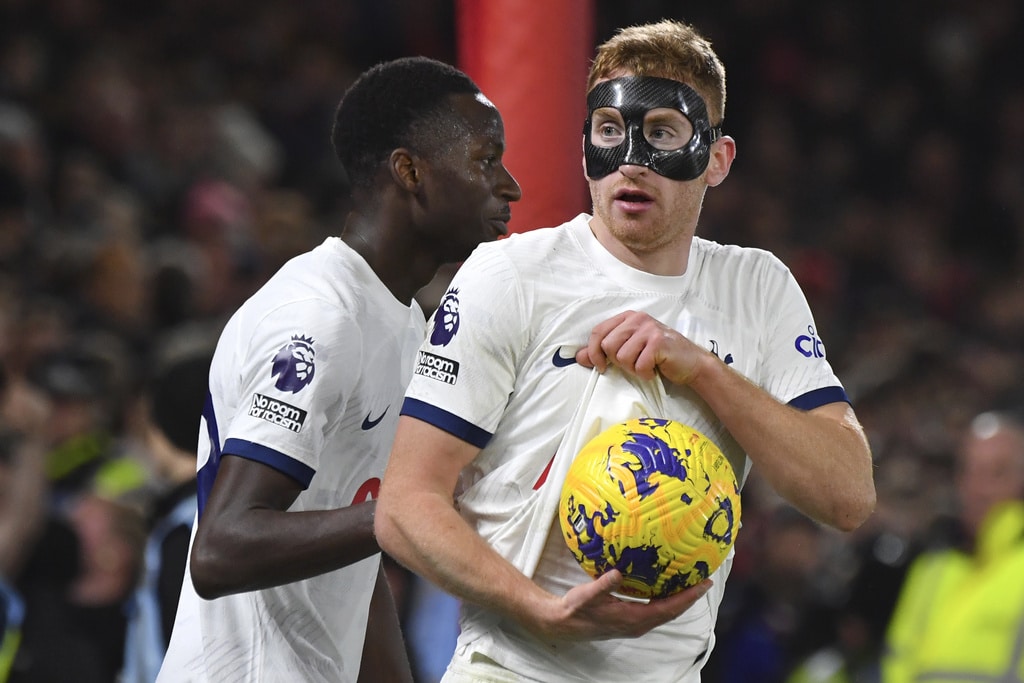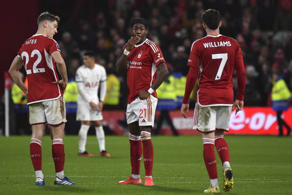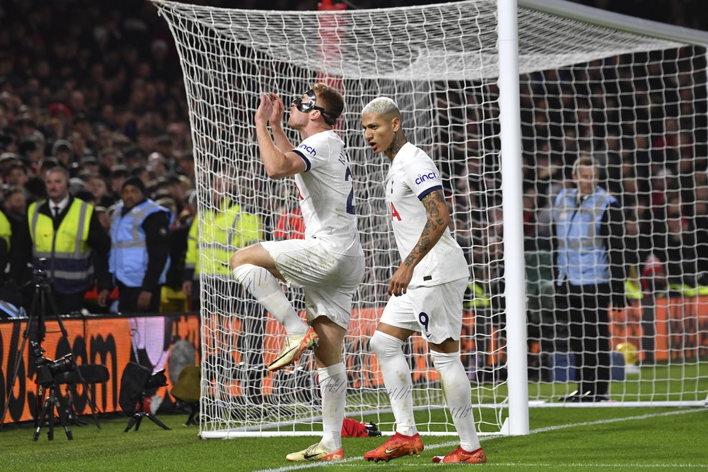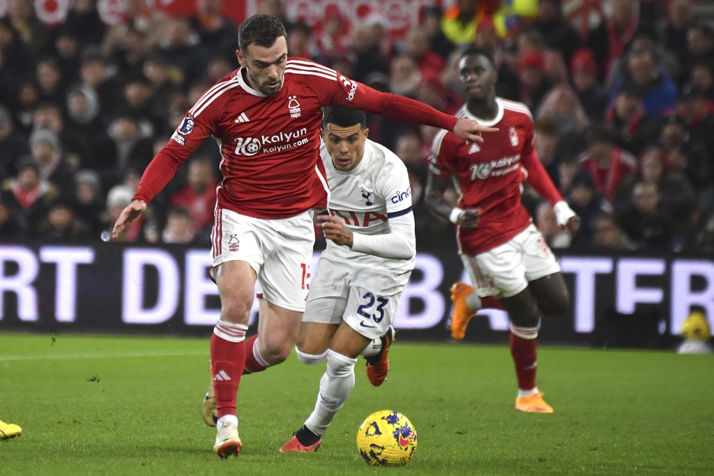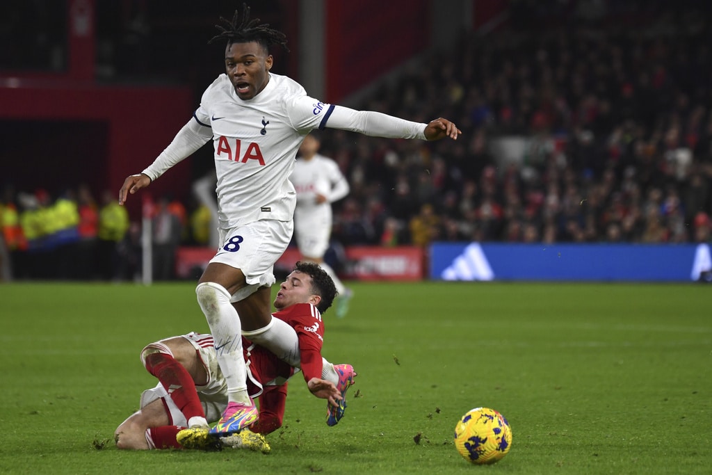 Tottenham’s Cristian Romero, right, challenges for the ball with Nottingham Forest’s Anthony Elanga during the English Premier League soccer match between Nottingham Forest and Tottenham Hotspur at City ground in Nottingham, England, Friday, Dec. 15, 2023. (AP Photo/Rui Vieira)Tottenham’s Cristian Romero, left, Tottenham’s goalkeeper Guglielmo Vicario, Tottenham’s Ben Davies, Tottenham’s Destiny Udogie, right, celebrate their victory at the English Premier League soccer match between Nottingham Forest and Tottenham Hotspur at City ground in Nottingham, England, Friday, Dec. 15, 2023. (AP Photo/Rui Vieira)Tottenham’s head coach Ange Postecoglou applaud supporters at the end of the English Premier League soccer match between Nottingham Forest and Tottenham Hotspur at City ground in Nottingham, England, Friday, Dec. 15, 2023. (AP Photo/Rui Vieira)Tottenham Hotspur players celebrate their victory at the English Premier League soccer match between Nottingham Forest and Tottenham Hotspur at City ground in Nottingham, England, Friday, Dec. 15, 2023. (AP Photo/Rui Vieira)Nottingham Forest’s goalkeeper Matt Turner in action during the English Premier League soccer match between Nottingham Forest and Tottenham Hotspur at City ground in Nottingham, England, Friday, Dec. 15, 2023. (AP Photo/Rui Vieira)Tottenham’s Son Heung-min, right, discusses with Nottingham Forest’s Neco Williams during the English Premier League soccer match between Nottingham Forest and Tottenham Hotspur at City ground in Nottingham, England, Friday, Dec. 15, 2023. (AP Photo/Rui Vieira)Tottenham’s Dejan Kulusevski celebrates after scoring his side’s second goal during the English Premier League soccer match between Nottingham Forest and Tottenham Hotspur at City ground in Nottingham, England, Friday, Dec. 15, 2023. (AP Photo/Rui Vieira)Tottenham’s Dejan Kulusevski, left, celebrates with Tottenham’s Richarlison after scoring his side’s second goal during the English Premier League soccer match between Nottingham Forest and Tottenham Hotspur at City ground in Nottingham, England, Friday, Dec. 15, 2023. (AP Photo/Rui Vieira)Tottenham’s Dejan Kulusevski, left, celebrates with Tottenham’s Richarlison after scoring his side’s opening goal during the English Premier League soccer match between Nottingham Forest and Tottenham Hotspur at City ground in Nottingham, England, Friday, Dec. 15, 2023. (AP Photo/Rui Vieira)Tottenham’s Destiny Udogie challenges for the ball with Nottingham Forest’s Neco Williams, bottom, during the English Premier League soccer match between Nottingham Forest and Tottenham Hotspur at City ground in Nottingham, England, Friday, Dec. 15, 2023. (AP Photo/Rui Vieira)Nottingham Forest’s Ryan Yates, left, Nottingham Forest’s Anthony Elanga, centre, Nottingham Forest’s Neco Williams during the English Premier League soccer match between Nottingham Forest and Tottenham Hotspur at City ground in Nottingham, England, Friday, Dec. 15, 2023. (AP Photo/Rui Vieira)Nottingham Forest’s Harry Toffolo, left, challenges for the ball with Tottenham’s Pedro Porro during the English Premier League soccer match between Nottingham Forest and Tottenham Hotspur at City ground in Nottingham, England, Friday, Dec. 15, 2023. (AP Photo/Rui Vieira)