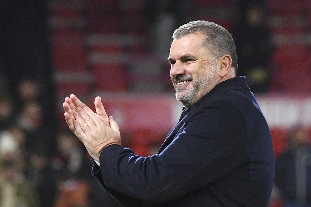 Tottenham’s head coach Ange Postecoglou applaud supporters at the end of the English Premier League soccer match between Nottingham Forest and Tottenham Hotspur at City ground in Nottingham, England, Friday, Dec. 15, 2023. (AP Photo/Rui Vieira)