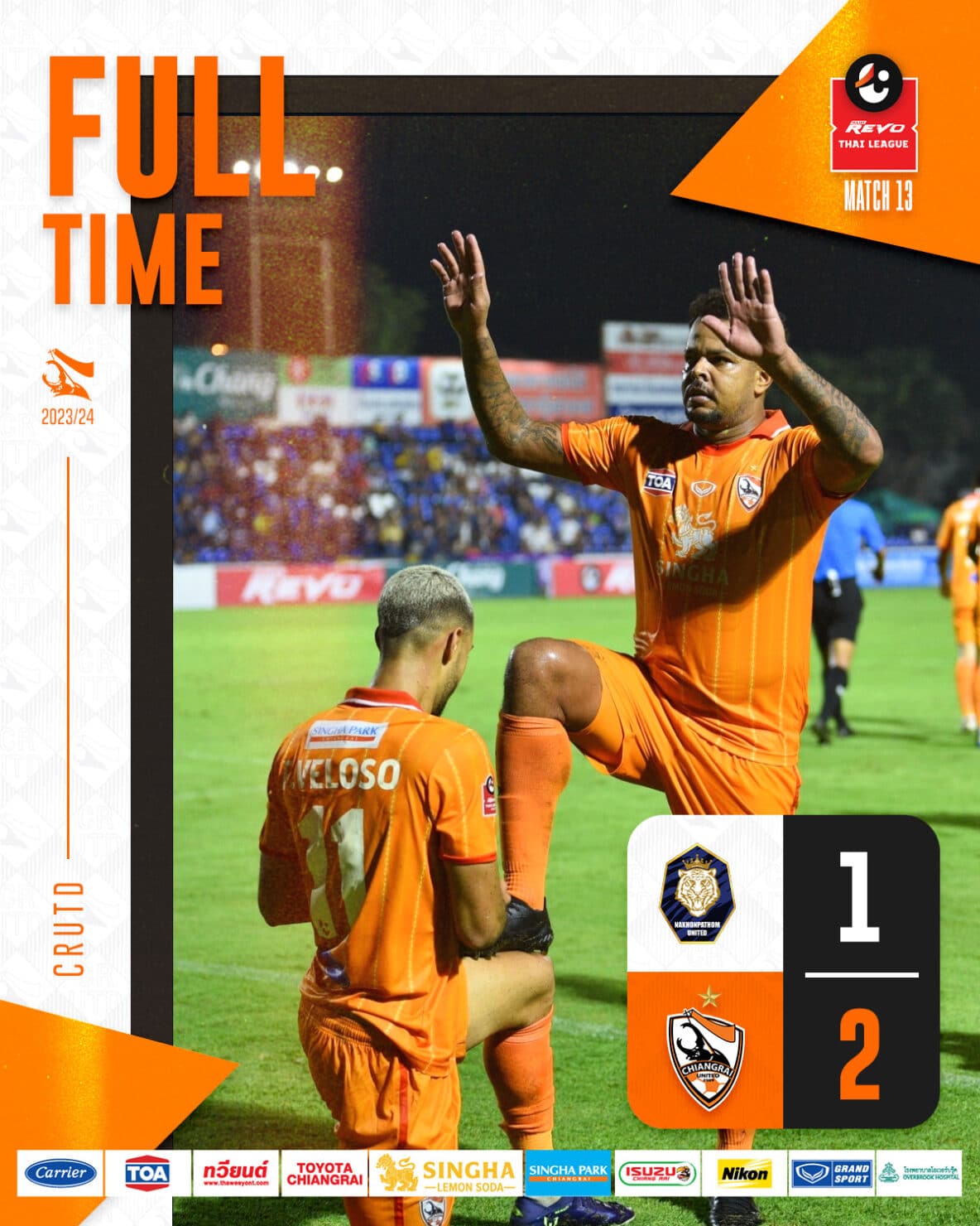 ผลการแข่งขันปรากฏว่า เฟลิเป้ เวโลโซ่ กลสยเป็นฮีโร่ของทีมเยือน เมื่อซัดเบิ้ลพา เชียงราย ยูไนเต็ด บุกเชือด นครปฐม ยูไนเต็ด ถึงรัง 2-1 จบเกมทัพ “กว่างโซ้ง” คว้าชัยนัดแรกในรอบ 7 เกม มี 19 คะแนน ยึดที่ 5 ของตาราง ขณะที่ เจ้าบ้าน “เสือป่าราชา” พ่าย 2 นัดติด มี 16 แต้ม รั้งอันดับ 10