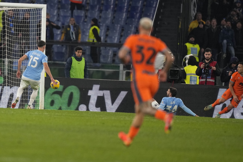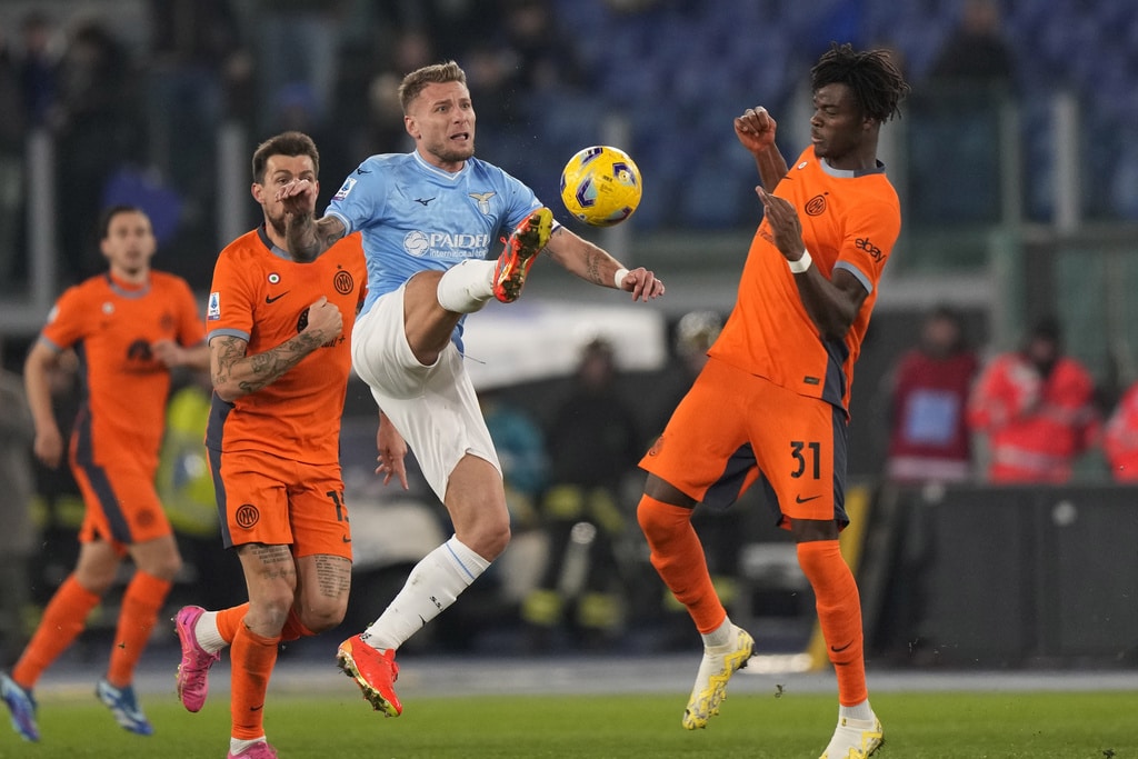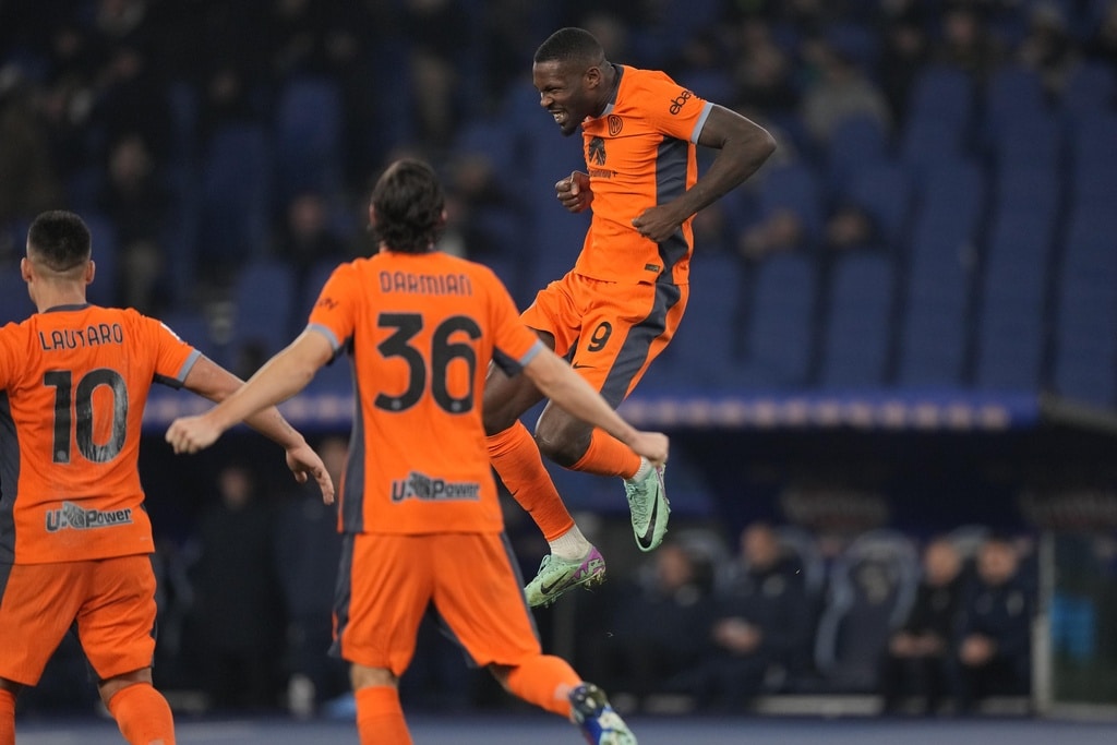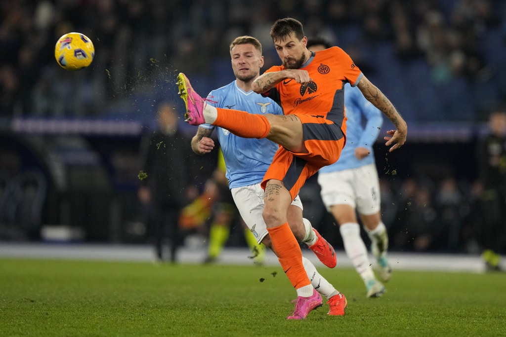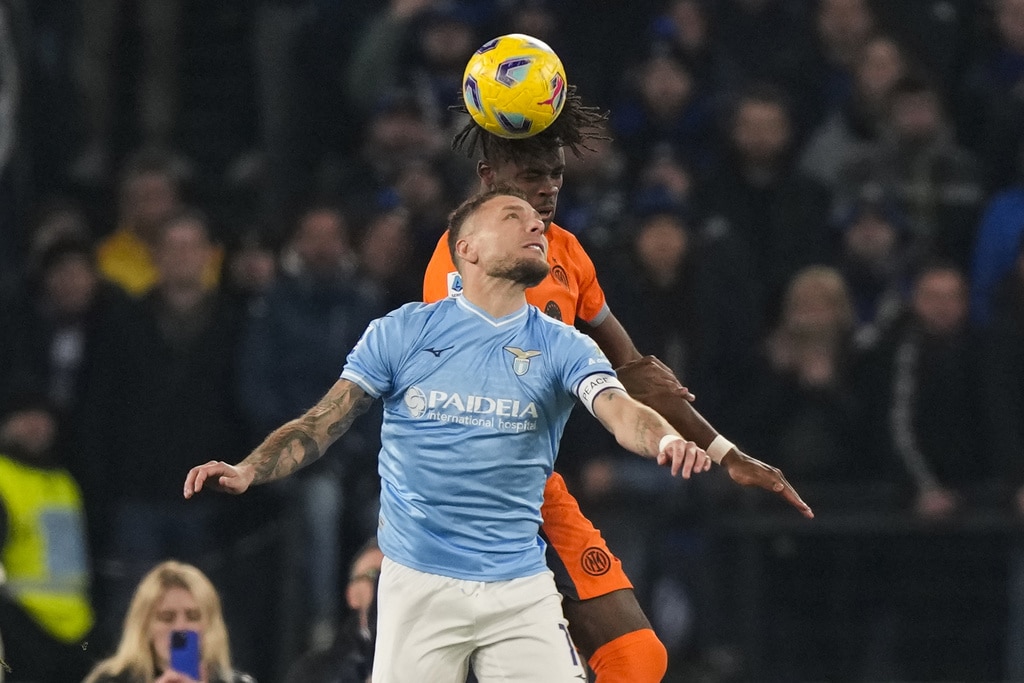 Inter Milan’s Henrikh Mkhitaryan challenges for the ball with Lazio’s Matteo Guendouzi during a Serie A soccer match between Lazio and Inter Milan, at Rome’s Olympic Stadium, Sunday, Dec. 17, 2023. (AP Photo/Andrew Medichini)ILazio’s goalkeeper Ivan Provedel knees as Inter Milan’s Marcus Thuram celebrates after scoring his side’s second goal during a Serie A soccer match between Lazio and Inter Milan, at Rome’s Olympic Stadium, Sunday, Dec. 17, 2023. (AP Photo/Andrew Medichini)Inter Milan’s Marcus Thuram celebrates with his teammate Lautaro Martinez after scoring his side’s second goal during a Serie A soccer match between Lazio and Inter Milan, at Rome’s Olympic Stadium, Sunday, Dec. 17, 2023. (AP Photo/Andrew Medichini)Inter Milan’s Marcus Thuram celebrates after scoring his side’s second goal during a Serie A soccer match between Lazio and Inter Milan, at Rome’s Olympic Stadium, Sunday, Dec. 17, 2023. (AP Photo/Andrew Medichini)Inter Milan’s Lautaro Martinez, left, challenges for the ball with Lazio’s Mario Gila during a Serie A soccer match between Lazio and Inter Milan, at Rome’s Olympic Stadium, Sunday, Dec. 17, 2023. (AP Photo/Andrew Medichini)Inter Milan’s Lautaro Martinez, left, challenges for the ball with Lazio’s Mario Gila during a Serie A soccer match between Lazio and Inter Milan, at Rome’s Olympic Stadium, Sunday, Dec. 17, 2023. (AP Photo/Andrew Medichini)Inter Milan’s Francesco Acerbi challenges for the ball with Lazio’s Ciro Immobile during a Serie A soccer match between Lazio and Inter Milan, at Rome’s Olympic Stadium, Sunday, Dec. 17, 2023. (AP Photo/Andrew Medichini)Inter Milan’s Lautaro Martinez, right, scores his side’s first goal during a Serie A soccer match between Lazio and Inter Milan, at Rome’s Olympic Stadium, Sunday, Dec. 17, 2023. (AP Photo/Andrew Medichini)Lazio’s Ciro Immobile, left, challenges for the ball with Inter Milan’s Yann Aurel Bisseck during a Serie A soccer match between Lazio and Inter Milan, at Rome’s Olympic Stadium, Sunday, Dec. 17, 2023. (AP Photo/Andrew Medichini)Lazio’s Ciro Immobile, left, challenges for the ball with Inter Milan’s Yann Aurel Bisseck during a Serie A soccer match between Lazio and Inter Milan, at Rome’s Olympic Stadium, Sunday, Dec. 17, 2023. (AP Photo/Andrew Medichini)Lazio’s Ciro Immobile goes for the header with Inter Milan’s Yann Aurel Bisseck challenges for the ball with Lazio’s Manuel Lazzari during a Serie A soccer match between Lazio and Inter Milan, at Rome’s Olympic Stadium, Sunday, Dec. 17, 2023. (AP Photo/Andrew Medichini)