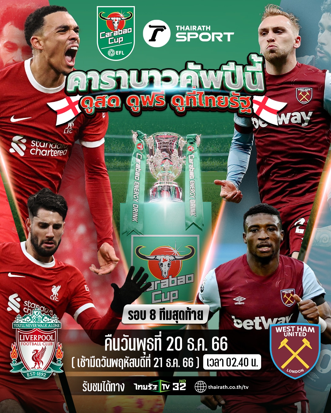 - 03:00 ลิเวอร์พูล พบ เวสต์แฮม ถ่ายทอดสดทางไทยรัฐทีวี