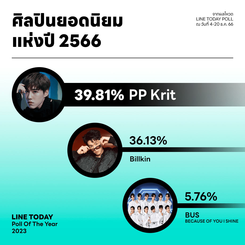 แอนโทเนีย – อิงฟ้า – พีพี – เจฟ ที่สุดแห่งวงการบันเทิงแห่งปี บนโพล LINE TODAY POLL OF THE YEAR 2023 ส่วนพิธาไม่ได้เป็นนายก คว้าผลโหวต ข่าวแห่งปี 2567
