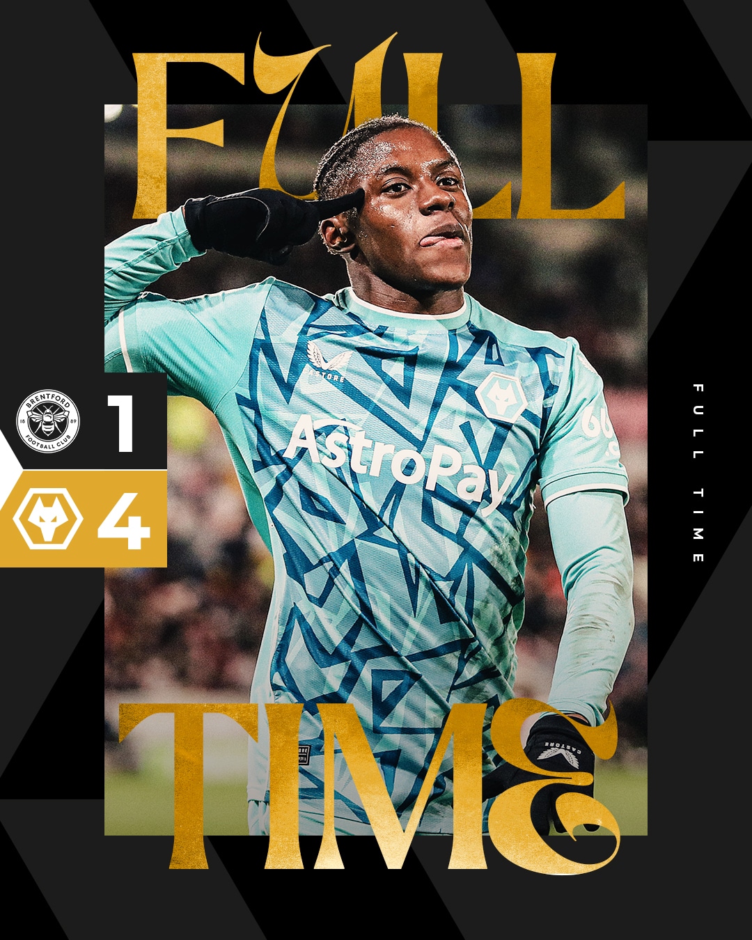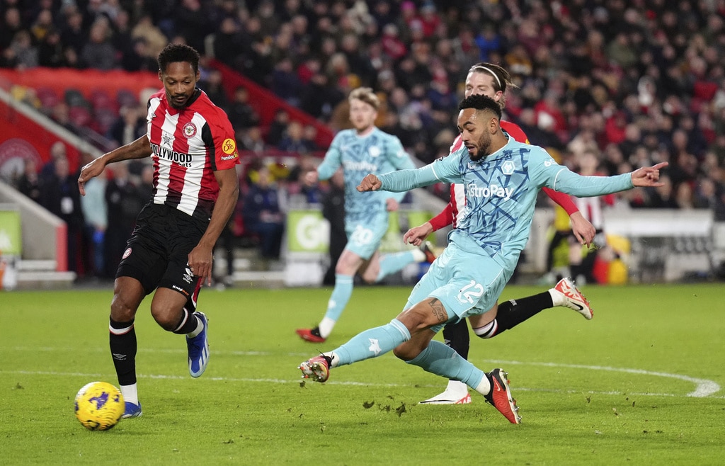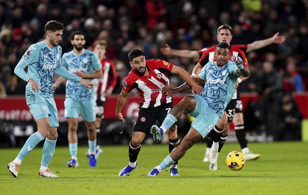 Brentford’s Neal Maupay, centre, battles with Wolverhampton Wanderers’ Santiago Bueno, left, and Mario Lemina during the English Premier League soccer match between Wolverhampton Wanderers vs Brentford FC at the Gtech Community Stadium, London, Wednesday Dec. 27, 2023. (John Walton/PA via AP)Wolverhampton Wanderers’ Matheus Cunha shoots at goal during the English Premier League soccer match between Wolverhampton Wanderers vs Brentford FC at the Gtech Community Stadium, London, Wednesday Dec. 27, 2023. (John Walton/PA via AP)Wolverhampton Wanderers’ Rayan Ait-Nouri, left, and Brentford’s Mads Roerslev battle for the ball during the English Premier League soccer match between Wolverhampton Wanderers vs Brentford FC at the Gtech Community Stadium, London, Wednesday Dec. 27, 2023. (John Walton/PA via AP)Wolverhampton Wanderers goalkeeper Jose Sa celebrates after team-mate Mario Lemina scores their first goal during the English Premier League soccer match between Wolverhampton Wanderers vs Brentford FC at the Gtech Community Stadium, London, Wednesday Dec. 27, 2023. (John Walton/PA via AP)Brentford’s Yoane Wissa, second right, scores their side’s first goal of the game during the English Premier League soccer match between Wolverhampton Wanderers vs Brentford FC at the Gtech Community Stadium, London, Wednesday Dec. 27, 2023. (John Walton/PA via AP)Wolverhampton Wanderers goalkeeper Jose Sa celebrates after team-mate Mario Lemina scores their first goal during the English Premier League soccer match between Wolverhampton Wanderers vs Brentford FC at the Gtech Community Stadium, London, Wednesday Dec. 27, 2023. (John Walton/PA via AP)Brentford’s Neal Maupay, centre, battles with Wolverhampton Wanderers’ Santiago Bueno, left, and Mario Lemina during the English Premier League soccer match between Wolverhampton Wanderers vs Brentford FC at the Gtech Community Stadium, London, Wednesday Dec. 27, 2023. (John Walton/PA via AP)