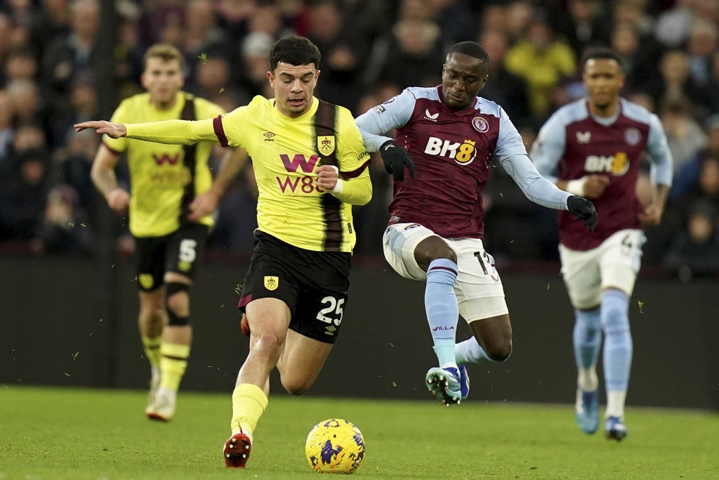 Burnley’s Zeki Amdouni, left, and Aston Villa’s Moussa Diaby battle for the ball during the English Premier League soccer match between Aston Villa and Burnley at Villa Park, Birmingham, England, Saturday, Dec. 30, 2023. (Jacob King/PA via AP)Aston Villa’s Douglas Luiz celebrates after scoring his sides third goal of the game during the English Premier League soccer match between Aston Villa and Burnley at Villa Park, Birmingham, England, Saturday, Dec. 30, 2023. (Jacob King/PA via AP)Burnley’s Lyle Foster, center, turns to celebrate scoring their side’s second goal of the game during the English Premier League soccer match between Aston Villa and Burnley at Villa Park, Birmingham, England, Saturday, Dec. 30, 2023. (Jacob King/PA via AP)Aston Villa’s Moussa Diaby, right, reacts after missing an opportunity during the English Premier League soccer match between Aston Villa and Burnley at Villa Park, Birmingham, England, Saturday, Dec. 30, 2023. (Jacob King/PA via AP)Burnley’s Lyle Foster, right, and Aston Villa’s Diego Carlos battle for the ball during the English Premier League soccer match between Aston Villa and Burnley at Villa Park, Birmingham, England, Saturday, Dec. 30, 2023. (Jacob King/PA via AP)Aston Villa’s Ollie Watkins, left, and Burnley’s Dara O’Shea battle for the ball during the English Premier League soccer match between Aston Villa and Burnley at Villa Park, Birmingham, England, Saturday, Dec. 30, 2023. (Jacob King/PA via AP)Aston Villa’s Leon Bailey, second right, scores the first goal of the game during the English Premier League soccer match between Aston Villa and Burnley at Villa Park, Birmingham, England, Saturday, Dec. 30, 2023. (Jacob King/PA via AP)Aston Villa’s Moussa Diaby, left, is fouled by Burnley’s Charlie Taylorl during the English Premier League soccer match between Aston Villa and Burnley at Villa Park, Birmingham, England, Saturday, Dec. 30, 2023. (Jacob King/PA via AP)Burnley’s Johann Gudmundsson, left, and Aston Villa’s Alex Moreno battle for the ball during the English Premier League soccer match between Aston Villa and Burnley at Villa Park, Birmingham, England, Saturday, Dec. 30, 2023. (Jacob King/PA via AP)Burnley’s Vitinho, left, and Aston Villa’s Jacob Ramsey battle for the ball during the English Premier League soccer match between Aston Villa and Burnley at Villa Park, Birmingham, England, Saturday, Dec. 30, 2023. (Jacob King/PA via AP)Burnley’s Wilson Odobert, below, is fouled by Aston Villa’s John McGinn, center, during the English Premier League soccer match between Aston Villa and Burnley at Villa Park, Birmingham, England, Saturday, Dec. 30, 2023. (Jacob King/PA via AP)