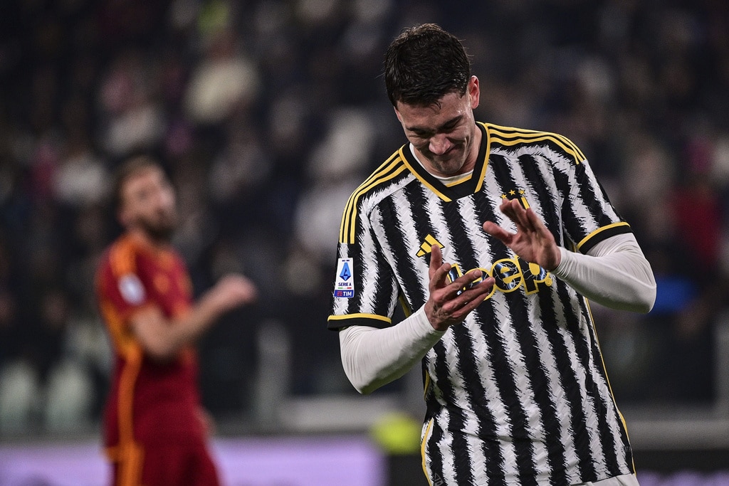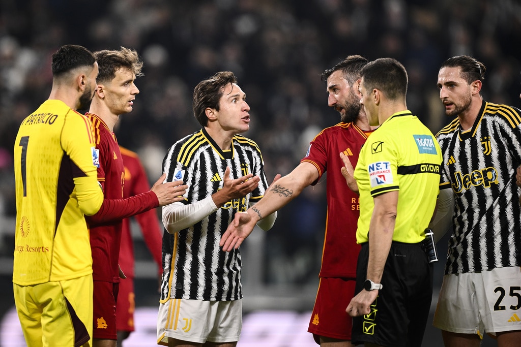 Juventus’ Weston McKennie, left, and Roma’s Nicola Zalewski battle for the ball during the Italian serie A soccer match between Juventus and Roma at the Allianz Stadium in Turin, Italy. Saturday, Dec. 30, 2023. (Marco Alpozzi/LaPresse via AP)Juventus players celebrate on the field at the end of the Italian Serie A soccer match between Juventus and Roma at the Allianz Stadium in Turin, Italy, Saturday, Dec. 30, 2023. (Marco Alpozzi/LaPresse via AP)Juventus’ Federico Chiesa, center, argues on the field with referee Sozza Simone, second from right, during the Italian Serie A soccer match between Juventus and Roma at the Allianz Stadium in Turin, Italy, Saturday, Dec. 30, 2023. (Fabio Ferrari/LaPresse via AP)Juventus’ Weston McKennie reacts on the field during the Italian Serie A soccer match between Juventus and Roma at the Allianz Stadium in Turin, Italy, Saturday, Dec. 30, 2023. (Fabio Ferrari/LaPresse via AP)Juventus’s Filip Kostic, top, and Roma’s Rasmus Kristensen battle for the ball during the Italian Serie A soccer match between Juventus and Roma at the Allianz Stadium in Turin, Italy, Saturday, Dec. 30, 2023. (Fabio Ferrari/LaPresse via AP)Juventus players celebrate the team’s goal during the Italian Serie A soccer match between Juventus and Roma at the Allianz Stadium in Turin, Italy, Saturday, Dec. 30, 2023. (Fabio Ferrari/LaPresse via AP)Juventus’ Kenan Yildiz, right, and Roma’s Gianluca Mancini battle for the ball during the Italian serie A soccer match between Juventus and Roma at the Allianz Stadium in Turin, Italy. Saturday, Dec. 30, 2023. (Marco Alpozzi/LaPresse via AP)Juventus’ Manuel Locatelli, right, and Roma’s Paulo Dybala battle for the ball during the Italian serie A soccer match between Juventus and Roma at the Allianz Stadium in Turin, Italy. Saturday, Dec. 30, 2023. (Marco Alpozzi/LaPresse via AP)Juventus’ Weston McKennie, center, and Roma’s Leandro Paredes, second right, battle for the ball during the Italian serie A soccer match between Juventus and Roma at the Allianz Stadium in Turin, Italy. Saturday, Dec. 30, 2023. (Marco Alpozzi/LaPresse via AP)Roma’s Paulo Dybala during the Italian serie A soccer match between Juventus and Roma at the Allianz Stadium in Turin, Italy. Saturday, Dec. 30, 2023. (Marco Alpozzi/LaPresse via AP)Juventus’ Dusan Vlahovic reacts after missing a scoring chance during the Italian serie A soccer match between Juventus and Roma at the Allianz Stadium in Turin, Italy. Saturday, Dec. 30, 2023. (Marco Alpozzi/LaPresse via AP)