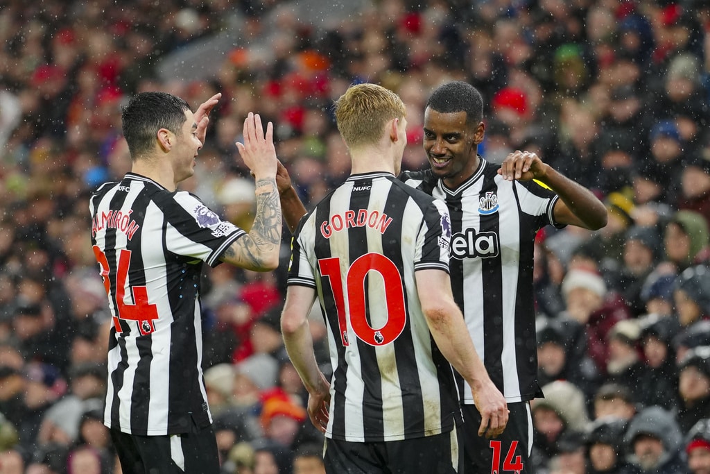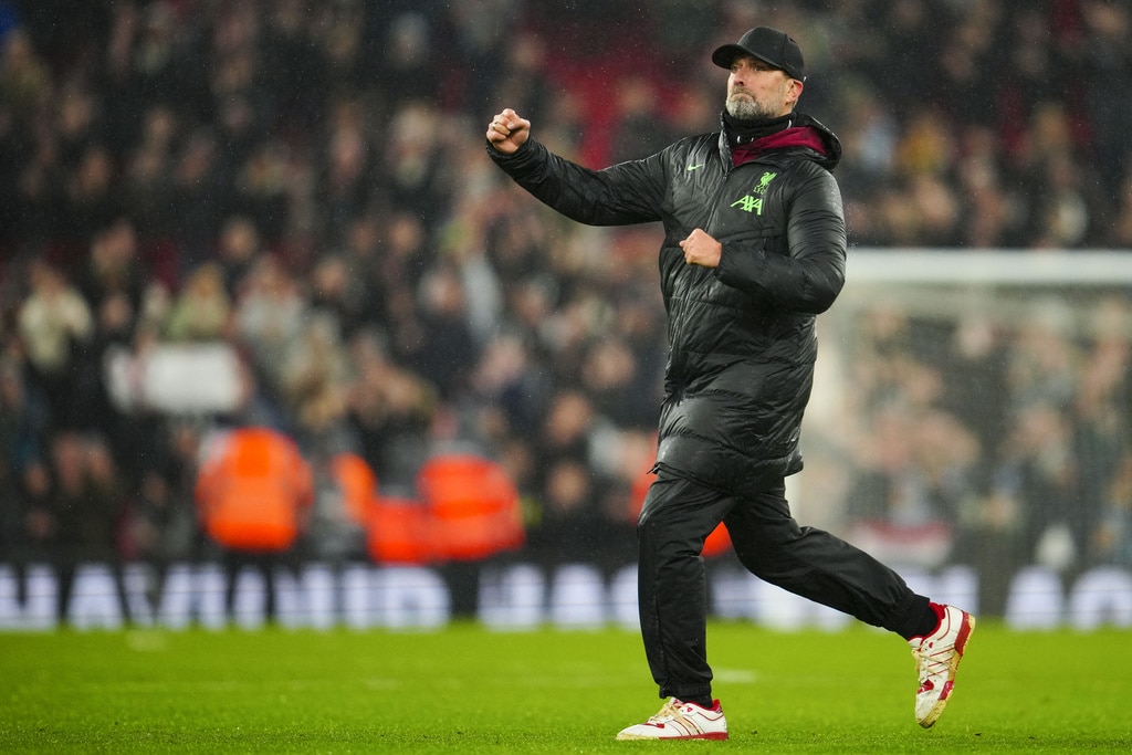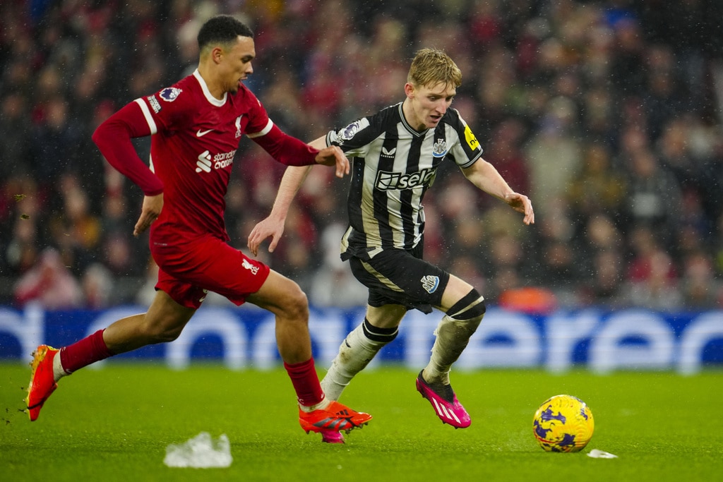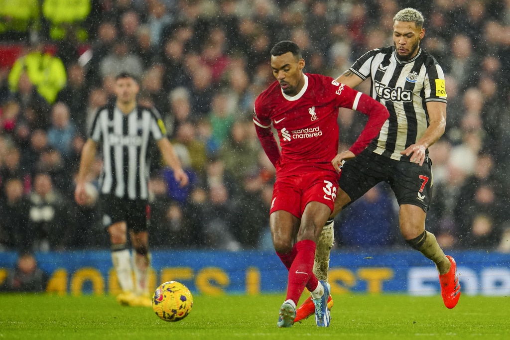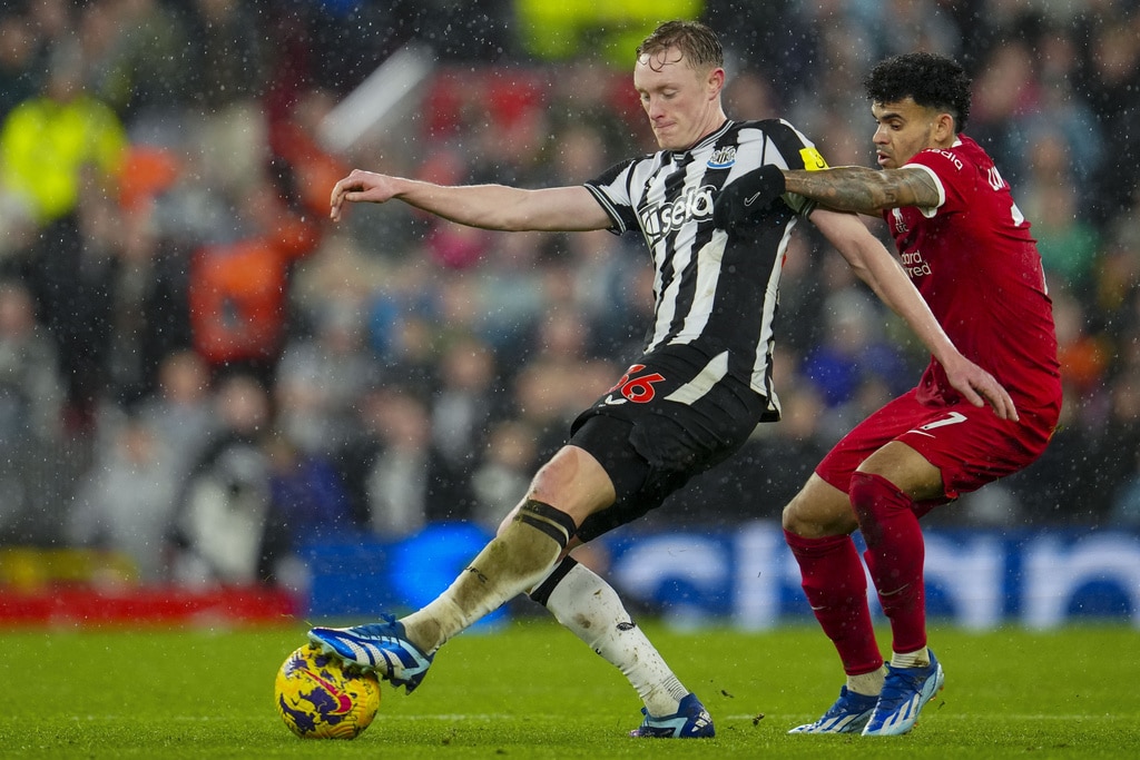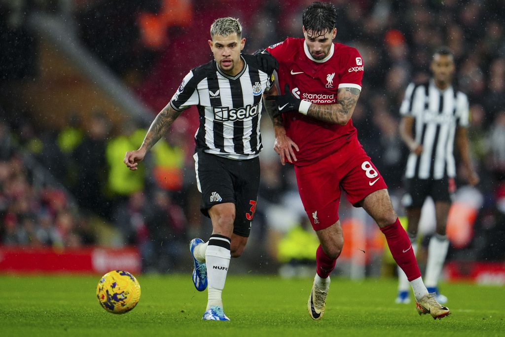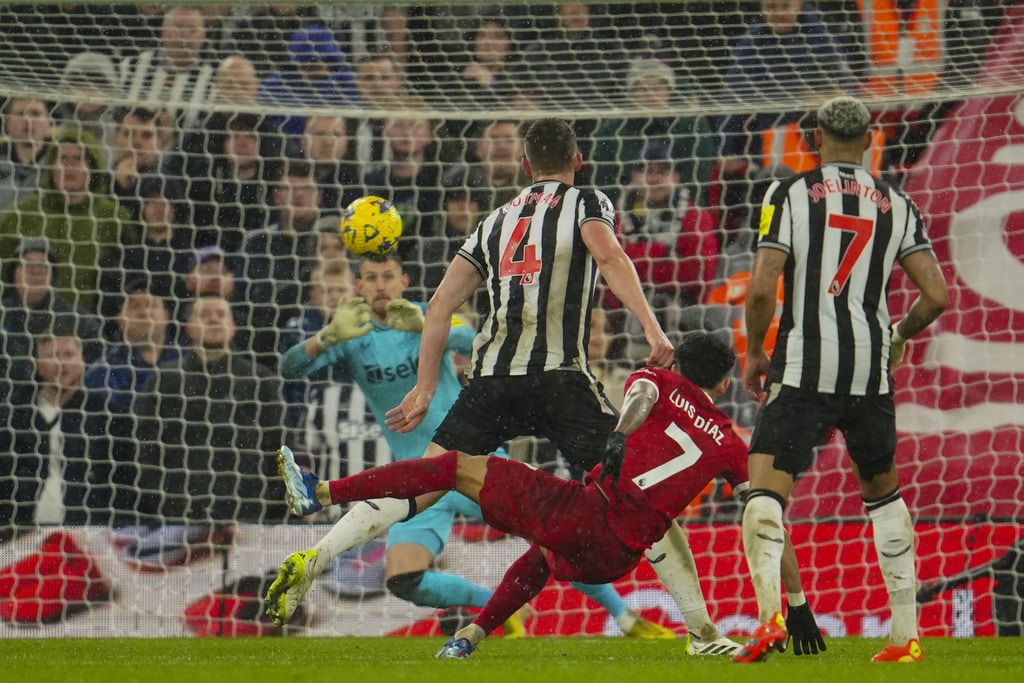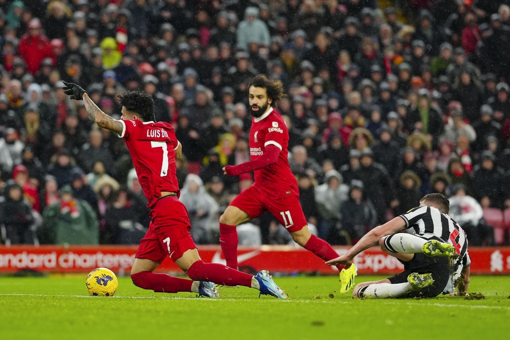 Liverpool’s Luis Diaz, left, duels for the ball with Newcastle’s Sven Botman during the English Premier League soccer match between Liverpool and Newcastle, at Anfield stadium in Liverpool, England, Monday, Jan. 1, 2024. (AP Photo/Jon Super)Liverpool’s Trent Alexander-Arnold celebrates at the end of the English Premier League soccer match between Liverpool and Newcastle, at Anfield stadium in Liverpool, England, Monday, Jan. 1, 2024. (AP Photo/Jon Super)Liverpool’s Mohamed Salah celebrates at the end of the English Premier League soccer match between Liverpool and Newcastle, at Anfield stadium in Liverpool, England, Monday, Jan. 1, 2024. (AP Photo/Jon Super)Liverpool’s manager Jurgen Klopp celebrates at the end of the English Premier League soccer match between Liverpool and Newcastle, at Anfield stadium in Liverpool, England, Monday, Jan. 1, 2024. (AP Photo/Jon Super)Liverpool’s Mohamed Salah, right, celebrates with teammates after scoring his side’s fourth goal during the English Premier League soccer match between Liverpool and Newcastle, at Anfield stadium in Liverpool, England, Monday, Jan. 1, 2024. (AP Photo/Jon Super)Newcastle’s Joelinton, right, duels for the ball with Liverpool’s Ryan Gravenberch during the English Premier League soccer match between Liverpool and Newcastle, at Anfield stadium in Liverpool, England, Monday, Jan. 1, 2024. (AP Photo/Jon Super)Newcastle’s Anthony Gordon, right, duels for the ball with Liverpool’s Trent Alexander-Arnold during the English Premier League soccer match between Liverpool and Newcastle, at Anfield stadium in Liverpool, England, Monday, Jan. 1, 2024. (AP Photo/Jon Super)Newcastle’s goalkeeper Martin Dubravka makes a save in front of Liverpool’s Luis Diaz during the English Premier League soccer match between Liverpool and Newcastle, at Anfield stadium in Liverpool, England, Monday, Jan. 1, 2024. (AP Photo/Jon Super)Newcastle’s Anthony Gordon, center, duels for the ball with Liverpool’s Dominik Szoboszlai, left, and Liverpool’s Trent Alexander-Arnold during the English Premier League soccer match between Liverpool and Newcastle, at Anfield stadium in Liverpool, England, Monday, Jan. 1, 2024. (AP Photo/Jon Super)Newcastle’s Alexander Isak, right, celebrates with teammates after scoring his side’s opening goal during the English Premier League soccer match between Liverpool and Newcastle, at Anfield stadium in Liverpool, England, Monday, Jan. 1, 2024. (AP Photo/Jon Super)Newcastle’s Sean Longstaff, left, duels for the ball with Liverpool’s Luis Diaz during the English Premier League soccer match between Liverpool and Newcastle, at Anfield stadium in Liverpool, England, Monday, Jan. 1, 2024. (AP Photo/Jon Super)Newcastle’s Bruno Guimaraes, left, duels for the ball with Liverpool’s Dominik Szoboszlai during the English Premier League soccer match between Liverpool and Newcastle, at Anfield stadium in Liverpool, England, Monday, Jan. 1, 2024. (AP Photo/Jon Super)Newcastle’s goalkeeper Martin Dubravka, center, reacts after a save penalty during the English Premier League soccer match between Liverpool and Newcastle, at Anfield stadium in Liverpool, England, Monday, Jan. 1, 2024. (AP Photo/Jon Super)Liverpool’s Mohamed Salah kicks the ball and missing a penalty during the English Premier League soccer match between Liverpool and Newcastle, at Anfield stadium in Liverpool, England, Monday, Jan. 1, 2024. (AP Photo/Jon Super)
