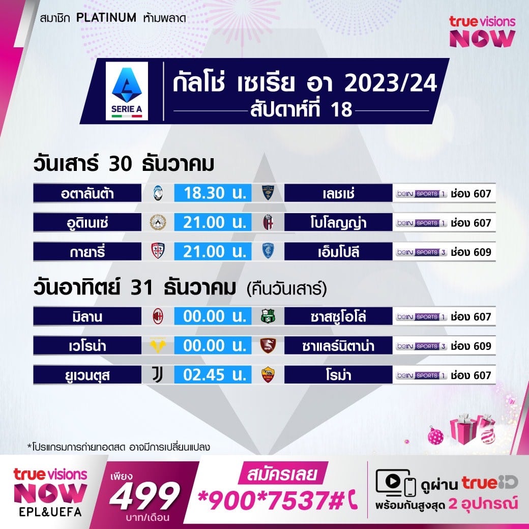 ขอบคุณข้อมูลจาก : Serie A / True Visions