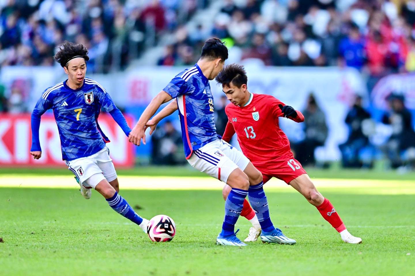 นาทีที่ 84 ทาคูมุ คาวามูระ ได้โขกจังหวะแรกไปติดเซฟของ ปฏิวัติ คำไหม ก่อนตามโขกซ้ำเข้าไปให้ ญี่ปุ่น หนีห่างเป็น 4-0