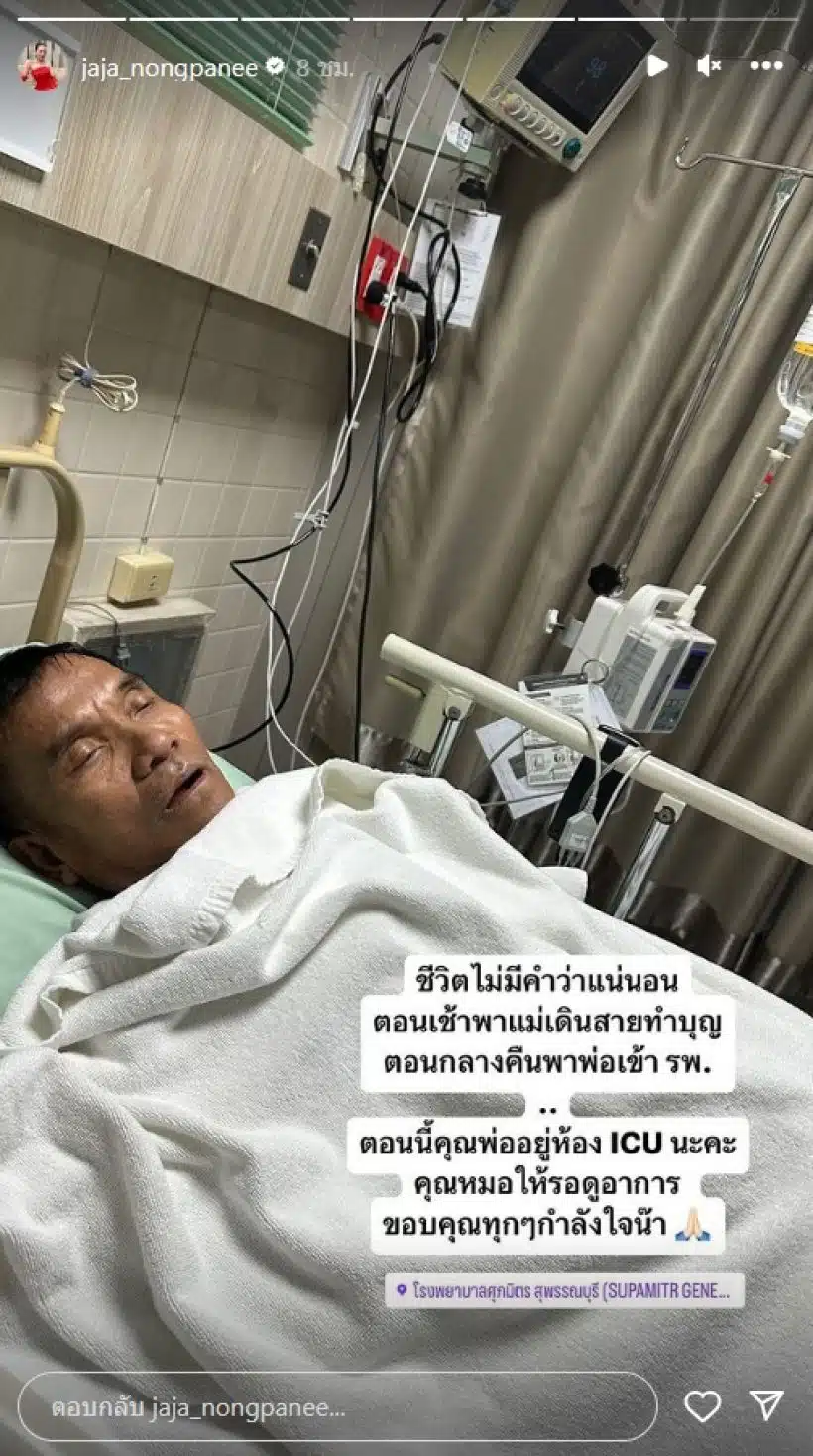 - ส่งกำลังใจ พ่อ ‘จ๊ะ นงผณี’ ป่วยเข้าไอซียูด่วน ทีมแพทย์เฝ้าอาการใกล้ชิด