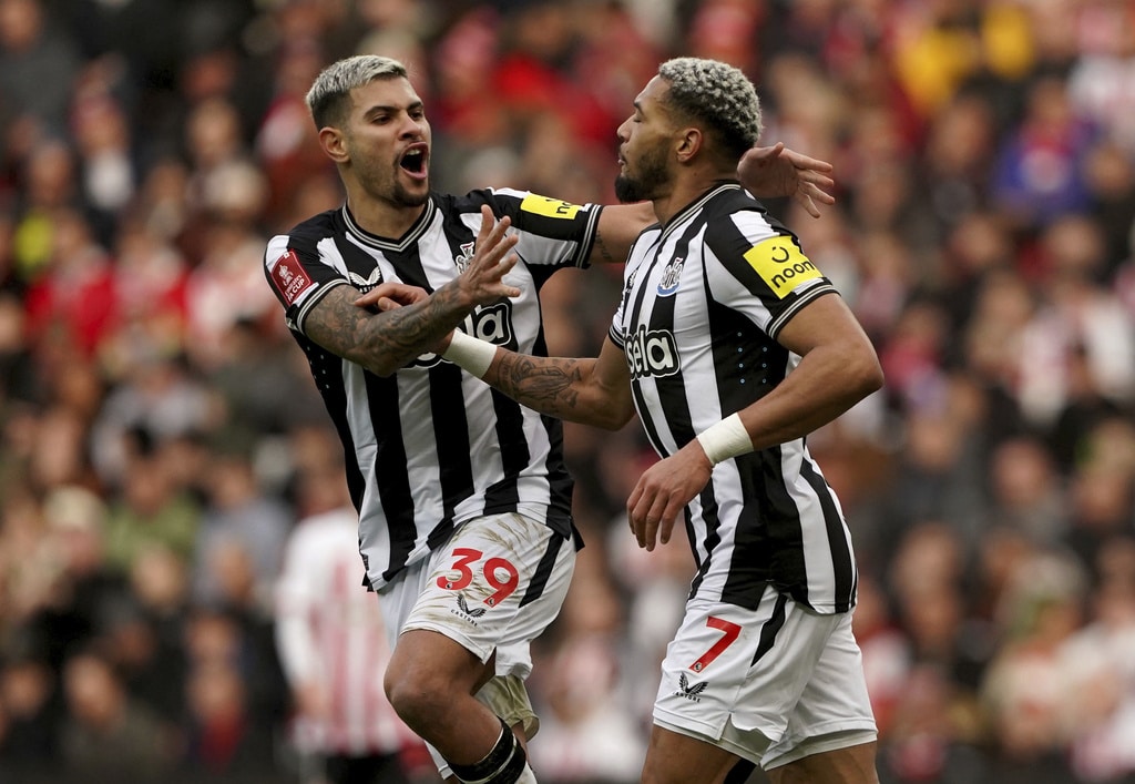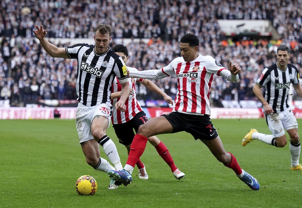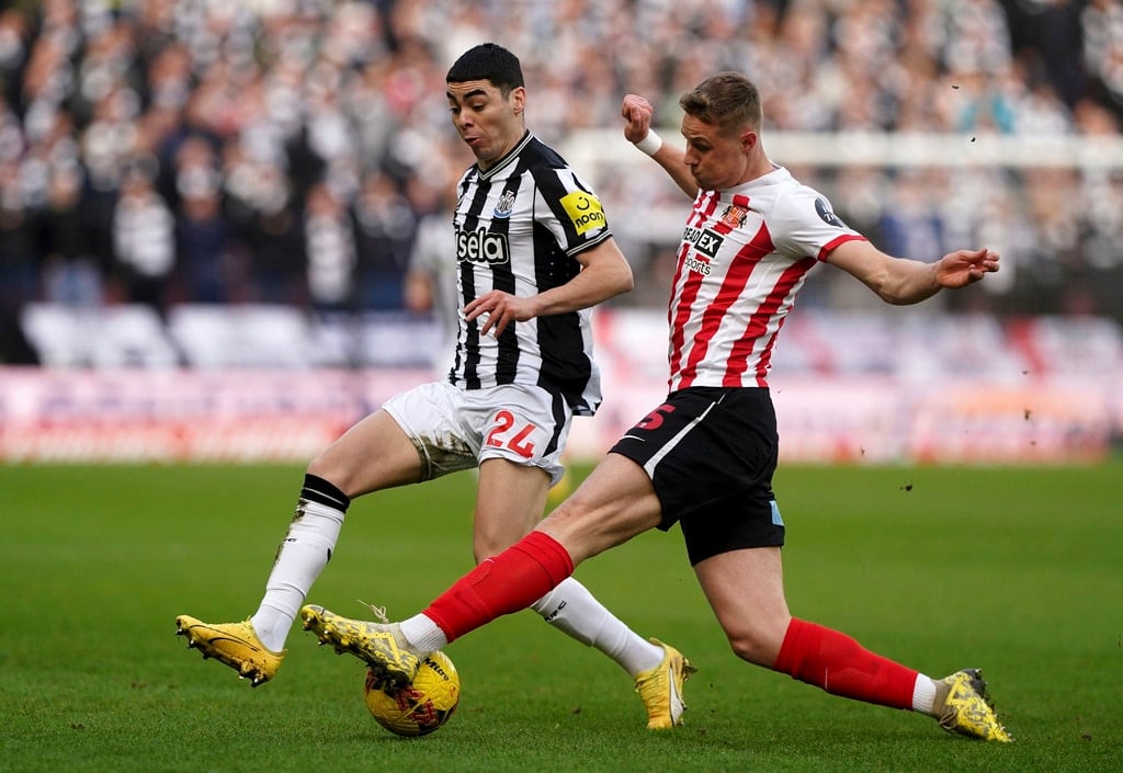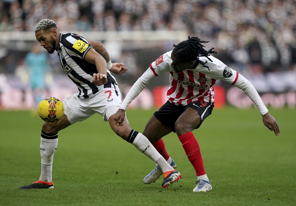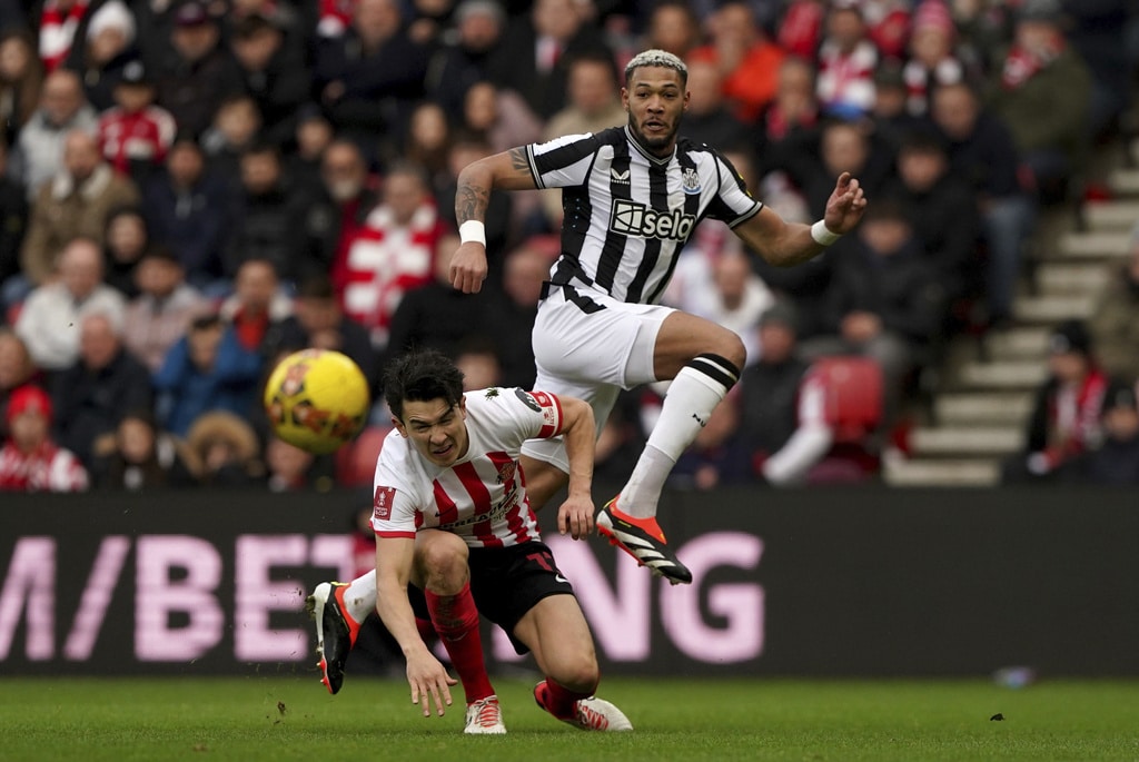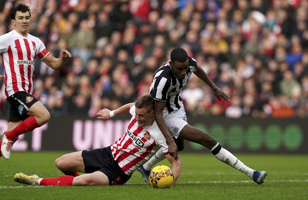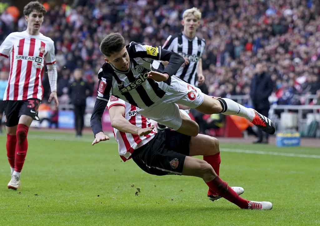 Newcastle United’s Miguel Almiron, left, and Sunderland’s Daniel Ballard battle for the ball during the FA Cup, third round soccer match between Sunderland and Newcastle United at the Stadium of Light, Sunderland, England, Saturday, Jan. 6, 2024. (Owen Humphreys/PA via AP)Newcastle United’s Anthony Gordon, left, and Sunderland’s Trai Hume battle for the ball during the FA Cup, third round soccer match between Sunderland and Newcastle United at the Stadium of Light, Sunderland, England, Saturday, Jan. 6, 2024. (Owen Humphreys/PA via AP)Sunderland’s Daniel Ballard, left, and Newcastle United’s Alexander Isak clash during the FA Cup, third round soccer match between Sunderland and Newcastle United at the Stadium of Light, Sunderland, England, Saturday, Jan. 6, 2024. (Owen Humphreys/PA via AP)Sunderland’s Luke O’Nien, left, challenges Newcastle United’s Lewis Miley during the FA Cup, third round soccer match between Sunderland and Newcastle United at the Stadium of Light, Sunderland, England, Saturday, Jan. 6, 2024. (Owen Humphreys/PA via AP)Newcastle United’s Joelinton, left, and Sunderland’s Pierre Ekwah battle for the ball during the FA Cup, third round soccer match between Sunderland and Newcastle United at the Stadium of Light, Sunderland, England, Saturday, Jan. 6, 2024. (Owen Humphreys/PA via AP)Newcastle United’s Joelinton, right, crosses the ball past Sunderland’s Luke O’Nien into the box to set up an own goal by Sunderland’s Daniel Ballard for the first goal of the game during the FA Cup, third round soccer match between Sunderland and Newcastle United at the Stadium of Light, Sunderland, England, Saturday, Jan. 6, 2024. (Owen Humphreys/PA via AP)Newcastle United’s Dan Burn, left, and Sunderland’s Jobe Bellingham battle for the ball during the FA Cup, third round soccer match between Sunderland and Newcastle United at the Stadium of Light, Sunderland, England, Saturday, Jan. 6, 2024. (Owen Humphreys/PA via AP)Newcastle United’s Joelinton, second right, celebrates with his team mates after his pass was turned into his own net by Sunderland’s Daniel Ballard for the first goal of the game during during the FA Cup, third round soccer match between Sunderland and Newcastle United at the Stadium of Light, Sunderland, England, Saturday, Jan. 6, 2024. (Owen Humphreys/PA via AP)Newcastle United’s Joelinton, right, celebrates with Bruno Guimaraes after his pass was turned into his own net by Sunderland’s Daniel Ballard for the first goal of the game during during the FA Cup, third round soccer match between Sunderland and Newcastle United at the Stadium of Light, Sunderland, England, Saturday, Jan. 6, 2024. (Owen Humphreys/PA via AP)Sunderland’s Daniel Ballard and Newcastle United’s Alexander Isak, right, battle for the ball during the FA Cup, third round soccer match between Sunderland and Newcastle United at the Stadium of Light, Sunderland, England, Saturday, Jan. 6, 2024. (Owen Humphreys/PA via AP)