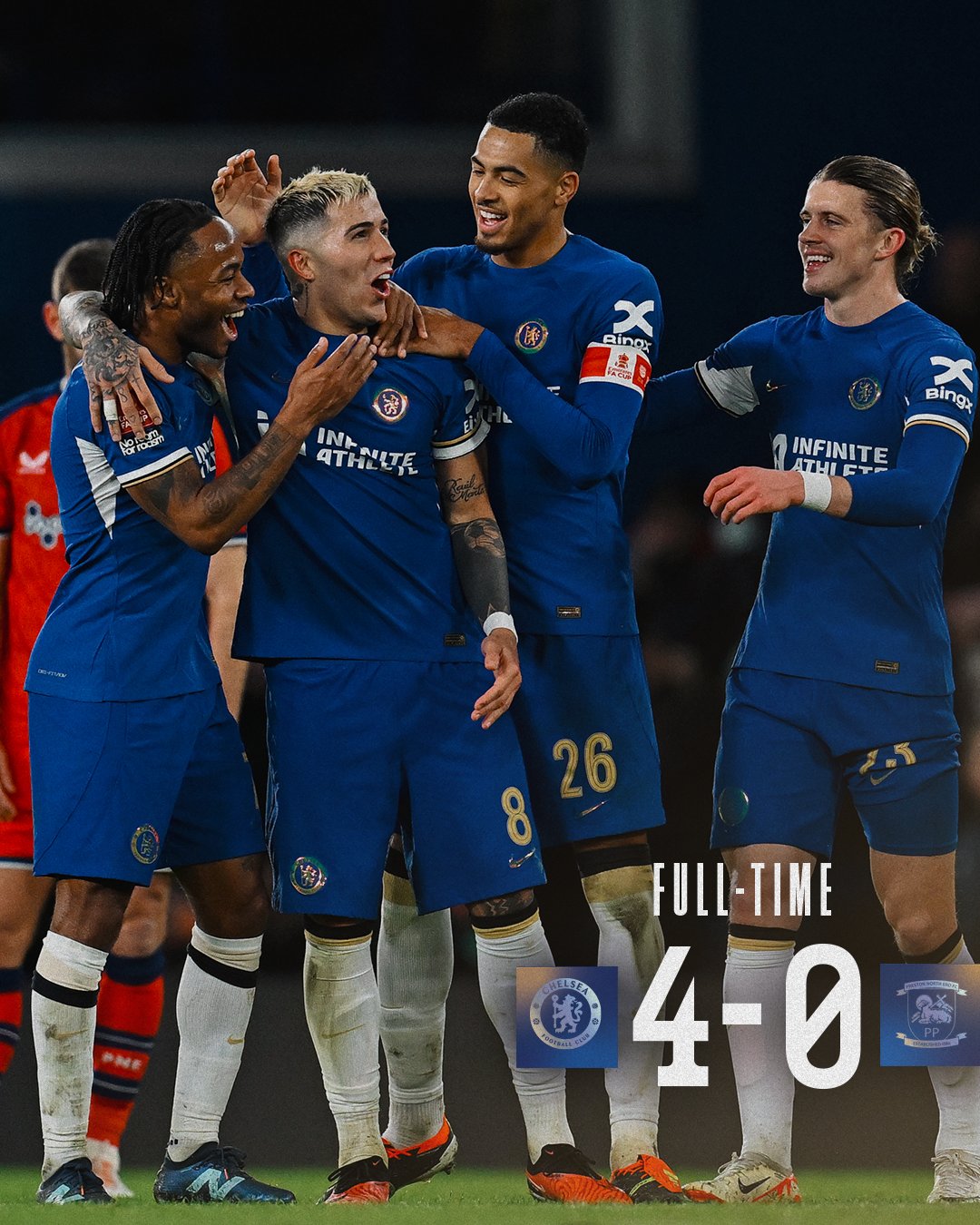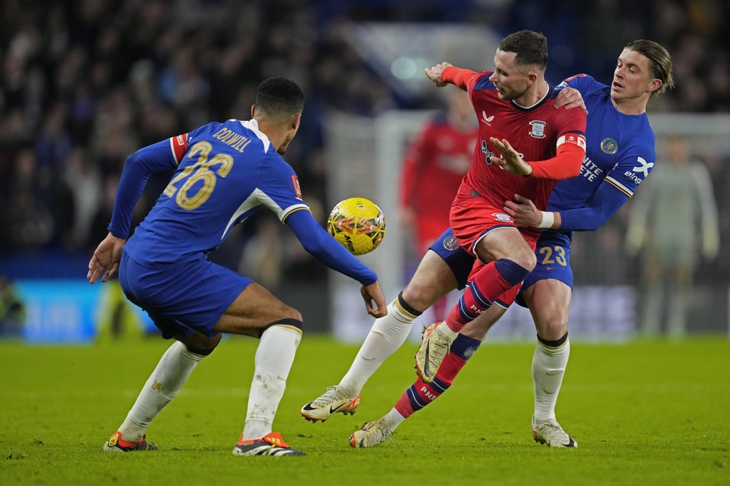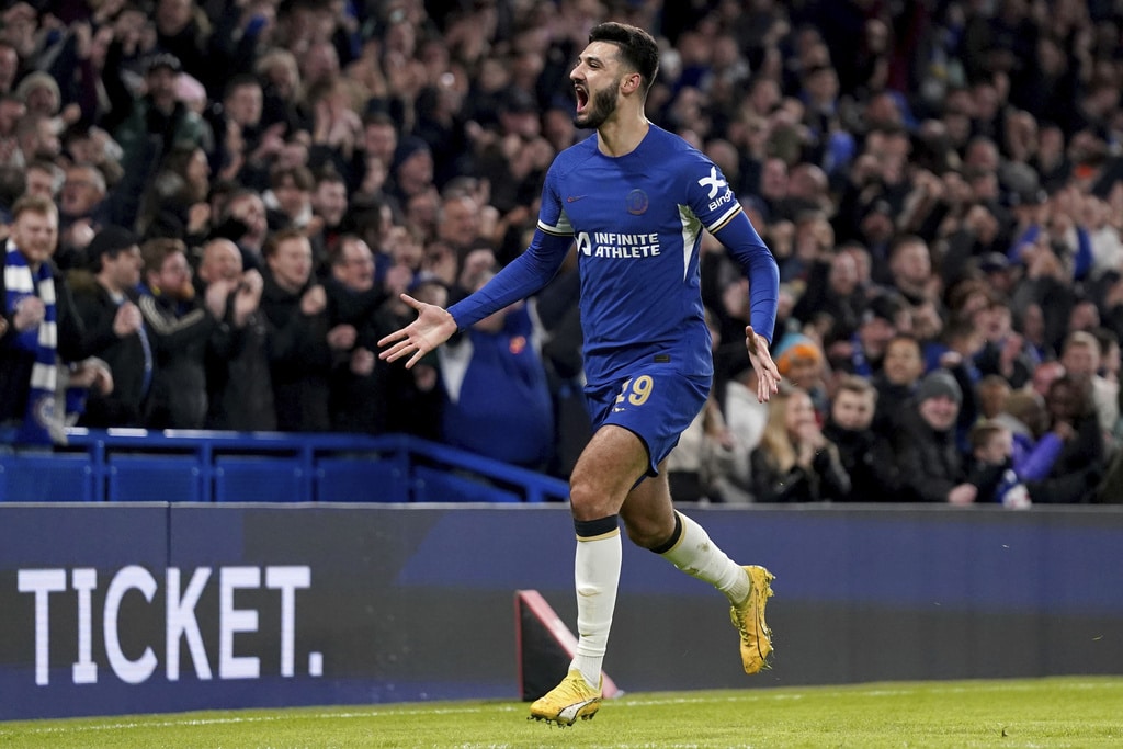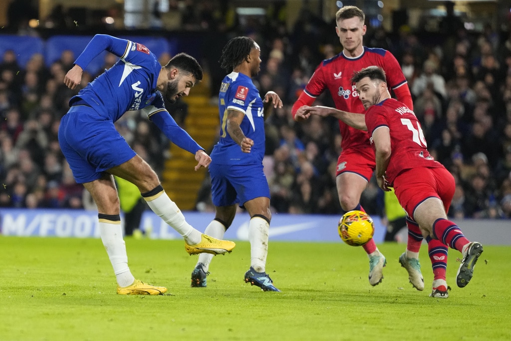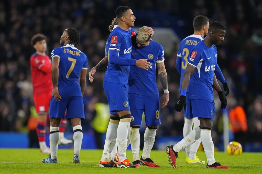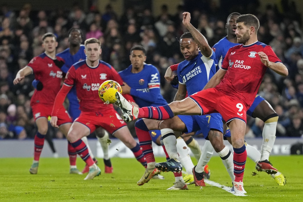 Chelsea’s Raheem Sterling, left, and Preston’s Benjamin Whiteman vie for the ball during the English FA Cup soccer match between Chelsea and Preston North End at Stamford Bridge stadium in London, Saturday, Jan. 6, 2024. (AP Photo/Kirsty Wigglesworth)Chelsea’s head coach Mauricio Pochettino, left, and players celebrate after their win in the English FA Cup soccer match against Preston North End at Stamford Bridge stadium in London, Saturday, Jan. 6, 2024. (AP Photo/Kirsty Wigglesworth)Chelsea’s head coach Mauricio Pochettino, right, hugs Chelsea’s Conor Gallagher to celebrate their win in the English FA Cup soccer match against Preston North End at Stamford Bridge stadium in London, Saturday, Jan. 6, 2024. (AP Photo/Kirsty Wigglesworth)Preston’s Alan Browne, center, fights for the ball with Chelsea’s Levi Colwill, left, and Chelsea’s Conor Gallagher during the English FA Cup soccer match between Chelsea and Preston North End at Stamford Bridge stadium in London, Saturday, Jan. 6, 2024. (AP Photo/Kirsty Wigglesworth)Chelsea’s Enzo Fernandez celebrates after scoring his side’s fourth goal during the English FA Cup soccer match between Chelsea and Preston North End at Stamford Bridge stadium in London, Saturday, Jan. 6, 2024. (AP Photo/Kirsty Wigglesworth)Chelsea’s Thiago Silva, left, celebrates after scoring his side’s second goal during the English FA Cup soccer match between Chelsea and Preston North End at Stamford Bridge stadium in London, Saturday, Jan. 6, 2024. (AP Photo/Kirsty Wigglesworth)Preston’s Ched Evans, right, and Chelsea’s Raheem Sterling, second right, vie for the ball during the English FA Cup soccer match between Chelsea and Preston North End at Stamford Bridge stadium in London, Saturday, Jan. 6, 2024. (AP Photo/Kirsty Wigglesworth)Chelsea’s Armando Broja celebrates after scoring the opening goal during the FA Cup Third Round match between FC Chelsea and Preston North End at Stamford Bridge stadium in London, England, Saturday, Jan. 6, 2024. (Bradley Collyer/PA via AP)Chelsea’s Armando Broja, left, is challenged by Preston’s Liam Lindsay during the English FA Cup soccer match between Chelsea and Preston North End at Stamford Bridge stadium in London, Saturday, Jan. 6, 2024. (AP Photo/Kirsty Wigglesworth)Chelsea’s Armando Broja, left, is challenged by Preston’s Liam Lindsay during the English FA Cup soccer match between Chelsea and Preston North End at Stamford Bridge stadium in London, Saturday, Jan. 6, 2024. (AP Photo/Kirsty Wigglesworth)Chelsea’s Armando Broja, left, shoots the ball in an attempt to score during the English FA Cup soccer match between Chelsea and Preston North End at Stamford Bridge stadium in London, Saturday, Jan. 6, 2024. (AP Photo/Kirsty Wigglesworth)