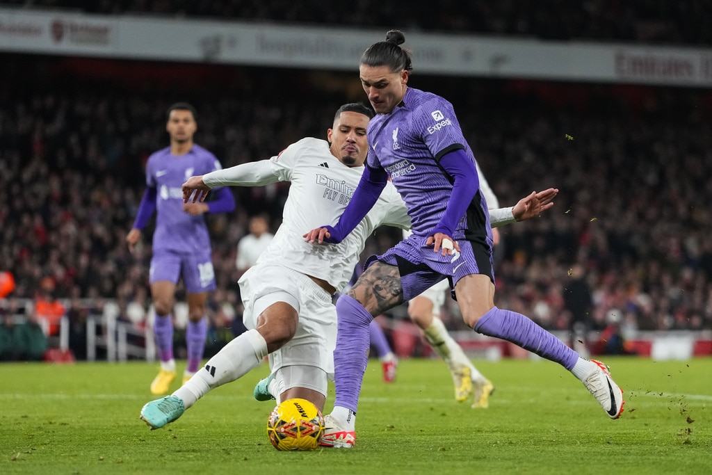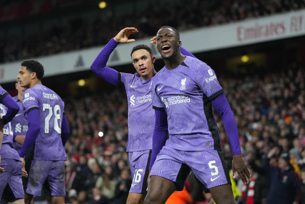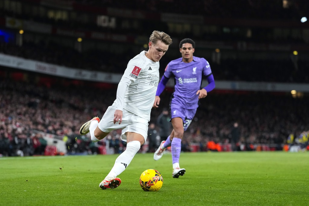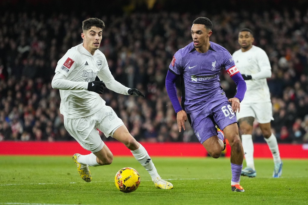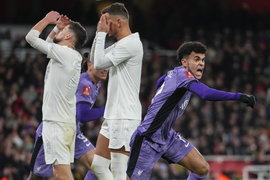 Arsenal’s Martin Odegaard, left, shoots the ball next to Liverpool’s Jarell Quansah during the English FA Cup soccer match between Arsenal and Liverpool at Emirates stadium in London, Sunday, Jan. 7, 2024. (AP Photo/Kirsty Wigglesworth)Arsenal’s Jakub Kiwior, center top, hits the ball to score an own goal during the English FA Cup soccer match between Arsenal and Liverpool at Emirates stadium in London, Sunday, Jan. 7, 2024. Liverpool won 2-0. (AP Photo/Kirsty Wigglesworth)Liverpool’s Luis Diaz, right, and Darwin Nunez celebrate their side’s first goal during the English FA Cup soccer match between Arsenal and Liverpool at Emirates stadium in London, Sunday, Jan. 7, 2024. The opening goal was an own goal by Arsenal’s Jakub Kiwior. (AP Photo/Kirsty Wigglesworth)Liverpool’s Ibrahima Konate, right, and Thiago celebrate their side’s first goal during the English FA Cup soccer match between Arsenal and Liverpool at Emirates stadium in London, Sunday, Jan. 7, 2024. The opening goal was an own goal by Arsenal’s Jakub Kiwior. (AP Photo/Kirsty Wigglesworth)Liverpool’s Luis Diaz celebrates his side’s first goal during the English FA Cup soccer match between Arsenal and Liverpool at Emirates stadium in London, Sunday, Jan. 7, 2024. The opening goal was an own goal by Arsenal’s Jakub Kiwior. (AP Photo/Kirsty Wigglesworth)Liverpool’s Luis Diaz celebrates his side’s first goal during the English FA Cup soccer match between Arsenal and Liverpool at Emirates stadium in London, Sunday, Jan. 7, 2024. The opening goal was an own goal by Arsenal’s Jakub Kiwior. (AP Photo/Kirsty Wigglesworth)Liverpool’s Luis Diaz celebrates his side’s first goal during the English FA Cup soccer match between Arsenal and Liverpool at Emirates stadium in London, Sunday, Jan. 7, 2024. The opening goal was an own goal by Arsenal’s Jakub Kiwior. (AP Photo/Kirsty Wigglesworth)Arsenal’s Jakub Kiwior, center top, hits the ball to score an own goal during the English FA Cup soccer match between Arsenal and Liverpool at Emirates stadium in London, Sunday, Jan. 7, 2024. (AP Photo/Kirsty Wigglesworth)Liverpool’s Jarell Quansah, right, battles for the ball with Arsenal’s Martin Odegaard during the English FA Cup soccer match between Arsenal and Liverpool at Emirates stadium in London, Sunday, Jan. 7, 2024. (AP Photo/Kirsty Wigglesworth)Liverpool’s Darwin Nunez, right, battles for the ball with Arsenal’s William Saliba during the English FA Cup soccer match between Arsenal and Liverpool at Emirates stadium in London, Sunday, Jan. 7, 2024. (AP Photo/Kirsty Wigglesworth)Liverpool’s Luis Diaz, left, fights for the ball with Arsenal’s Gabriel Magalhaes, center, and Jakub Kiwior during the English FA Cup soccer match between Arsenal and Liverpool at Emirates stadium in London, Sunday, Jan. 7, 2024. (AP Photo/Kirsty Wigglesworth)Arsenal’s Bukayo Saka, left, fights for the ball with Liverpool’s Joe Gomez during the English FA Cup soccer match between Arsenal and Liverpool at Emirates stadium in London, Sunday, Jan. 7, 2024. (AP Photo/Kirsty Wigglesworth)Liverpool’s Trent Alexander-Arnold, right, vies for the ball with Arsenal’s Kai Havertz during the English FA Cup soccer match between Arsenal and Liverpool at Emirates stadium in London, Sunday, Jan. 7, 2024. (AP Photo/Kirsty Wigglesworth)