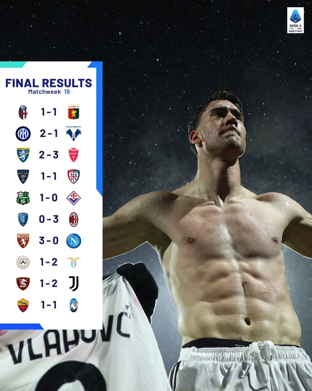 สรุปผลการแข่งขัน กัลโช่ เซเรียอา 2023/24 หลังจบนัดที่ 19