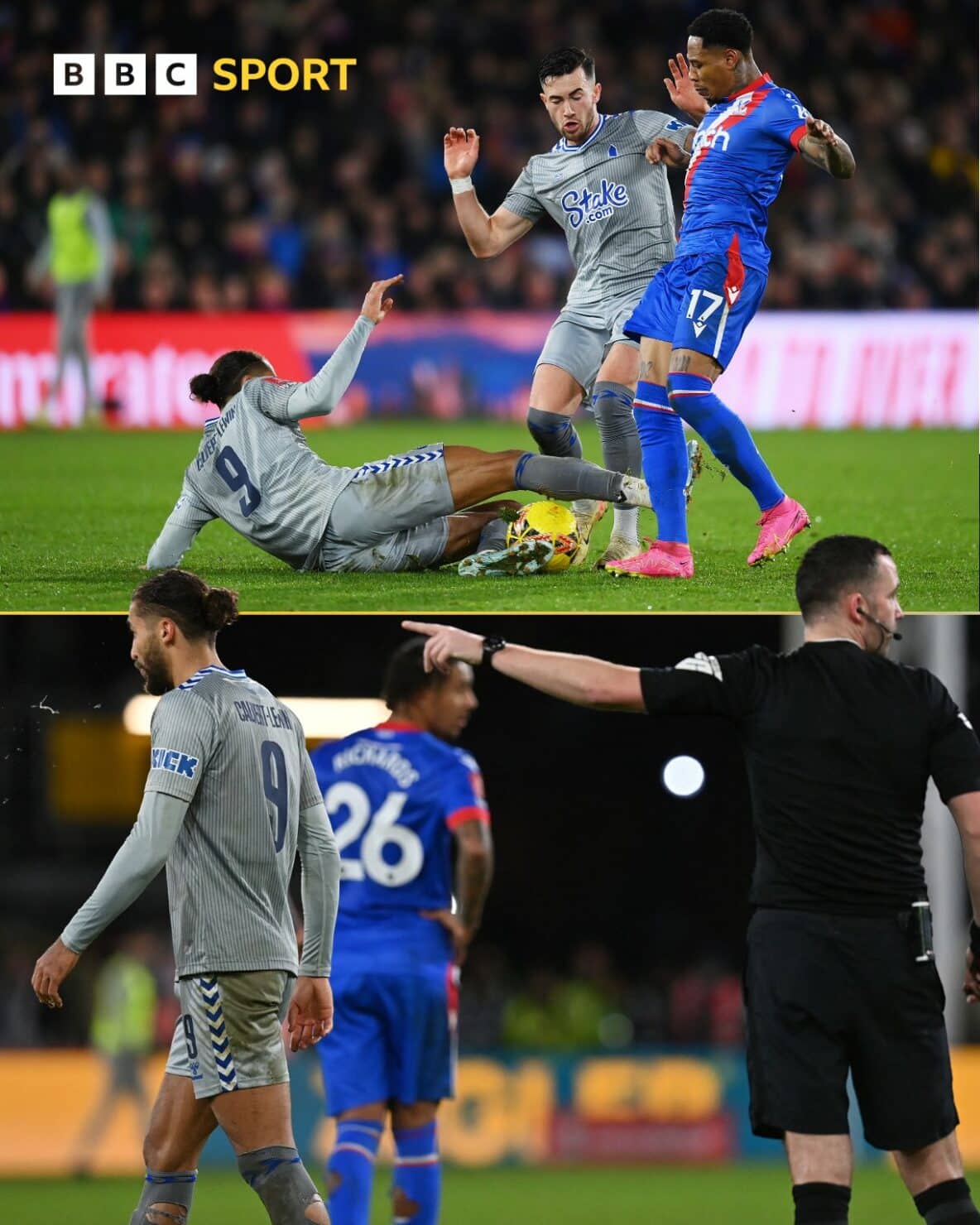 จังหวะดังกล่าวเกิดขึ้นในนาทีที่ 79 เมื่อ คัลเวิร์ต ลูวิน ไปยกเท้าสูงปะทะใส่หน้าแข้งของ เนธาเนี่ยล ไคล์ กองหลัง แม้กรรมการในสนามจะไม่ได้ว่าอะไร แต่ผู้ตัดสิน VAR กลับมองว่าเป็นการแข้าหนักก่อนมีการตัดสินใจให้ใบแดงกับ ศูนย์หน้าเอฟเวอร์ตันในที่สุด