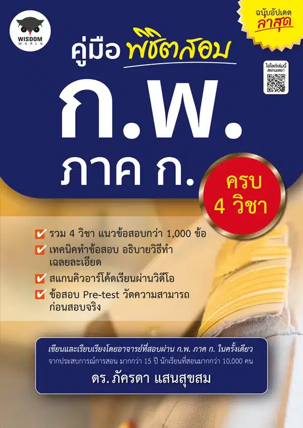 ราคา 265 บาท เขียนโดย ดร. ภัครดา แสนสุขสม เนื้อหาครบถ้วนรวม 4 วิชา แนวข้อสอบกว่า 1,000 ข้อ เทคนิคทำข้อสอบ อธิบายวิธีทำแบบเฉลยละเอียด