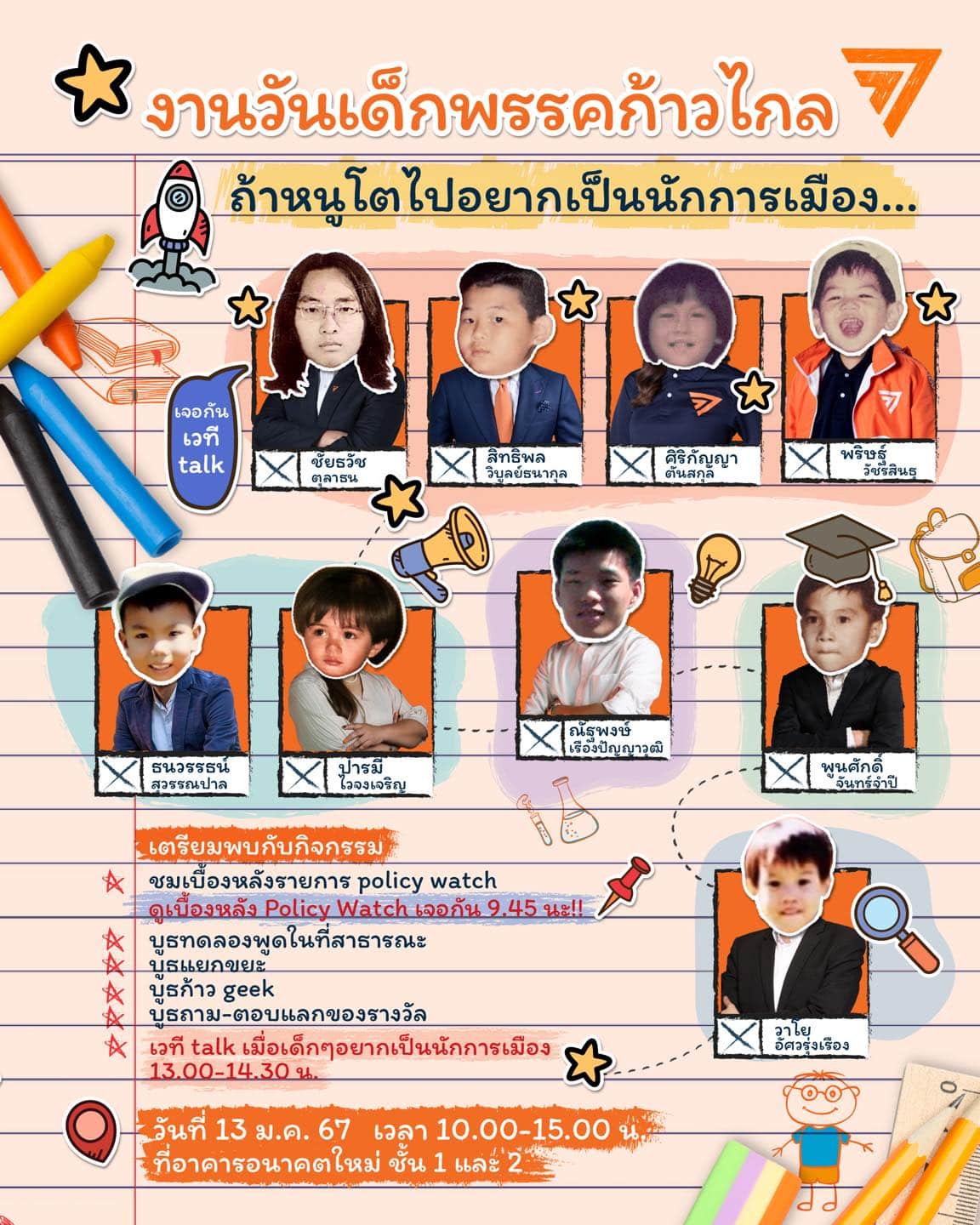 ที่สุดพลาดไม่ได้!!! กับเวที Talk สุดพิเศษ เวลา 13.00-14.30 น. “เมื่อเด็กๆ อยากเป็นนักการเมือง” ฟังประสบการณ์การเติบโตจากวัยเด็กสู่เส้นทางการเมืองของ สส.พรรคก้าวไกลทั้ง 4 ชัยธวัช ตุลาธน, สิทธิพล วิบูลย์ธนาสกุล, ศิริกัญญา ตันสกุล และ พริษฐ์ วัชรสินธุ