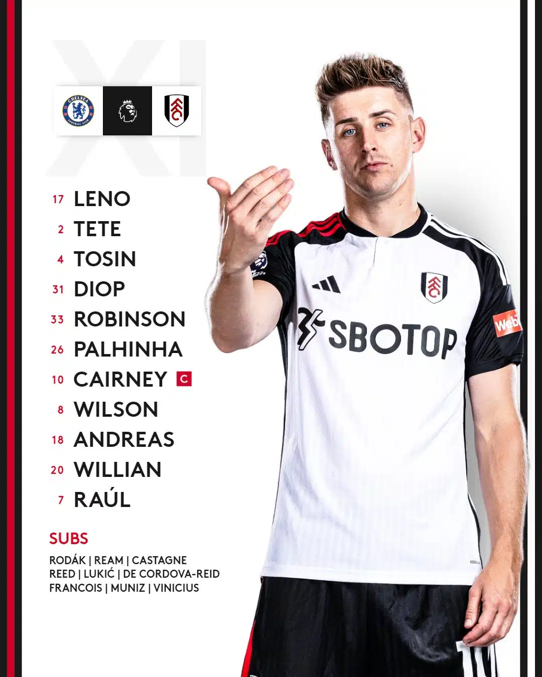 13 มกราคม 2567 รายชื่อผู้เล่น 11 ตัวจริง เชลซี พบ ฟูแล่ม ศึกฟุตบอล พรีเมียร์ลีก ฤดูกาล 2023-24 คืนนี้ ลิงก์ถูกลิขสิทธิ์ ดูบอลสดออนไลน์ ทาง True Premier Football เวลา 19:30 น.